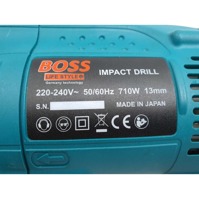 دریل چکشی برقی برند باس (BOSS) یکی از بهترین دریل های چکشی (ضربه ای) موجود در بازار می باشد که طرح آن دقیقا مشابه دریل ماکتیا می باشد و نیز ازکیفیت بالایی برخوردار است و میتواند نیازمندی شما به انجام امور فنی و ساختمان را به راحتی پوشش دهد. این دریل برقی دارای جنس بدنه بسیار مقاوم نسبت به ضربه بوده و حداکثر قطر مته ای که در سه نظام آن قرار میگیرد 13 میلی متر (13mm) می باشد. دریل چکشی برقی باس دارای کلید گازی (جهت تغییر سرعت به نسبت فشار وارده به کلید) و کنترل دور گردش بوده و همچنین دارای قابلیت چکشی (ضربه) نیز می باشد. این مدل دریل برقی دارای یک دستگیره جهت کنترل بهتر دریل در حین انجام کار مخصوصا در حالت چکشی می باشد تا دقت اپراتور را به بیشترین میزان برساند.