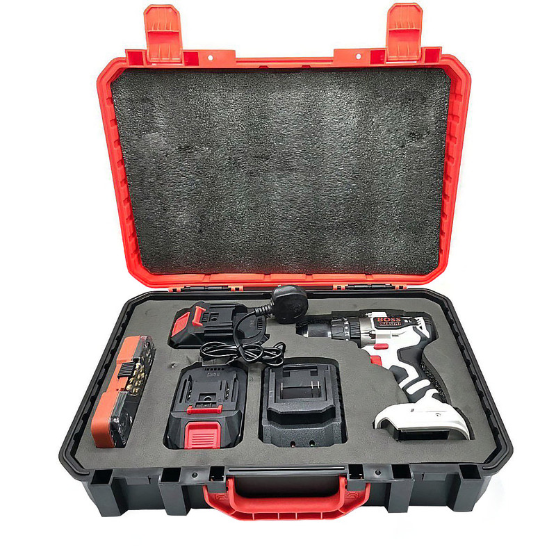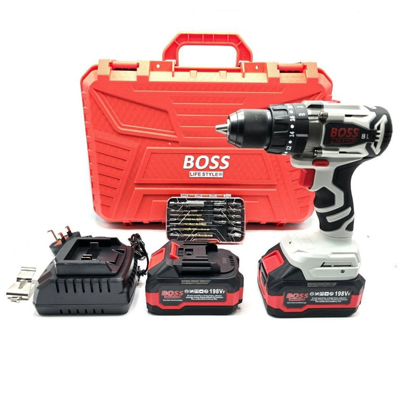 با سلام خدمت مشتریان محترم دریل شارژی چکشی ۱۹۸ ولت صنعتی ضد آب از برند معتبر باس می باشد که این محصول ساخت کشور چین است و براشلس و مناسب کارهای سنگین و کیفیت بسیار فوق العاده دارد و همچنین دارای نشانگر خطی روی باتری و سه نظام تمام فلزی سایز ۱۳ میلیمترو قدرت چکشی عالی و دو عدد باتری ۱۹۸ ولت لیتیوم و گیربکس دو دور قدرتمند و دور ۰ تا ۴۵۰ و ۰ تا ۱۹۵۰ دور بر دقیقه و قابلیت کنترل سرعت فشاری و چپگرد و راستگرد و قلاب کمری و شارژر پایه دار می باشد این دریل فست شارژ است و یک کیفBMC درجه ۱ دارد که درآن لوازم همراه؛ همچون ۱۰ عدد نوک پیچ گوشتی ۶ عدد مته آهن (سایز ۲ تا ۴) تبدیل بکس خور سر دریلی سایز ۱/۴ موجود می باشد