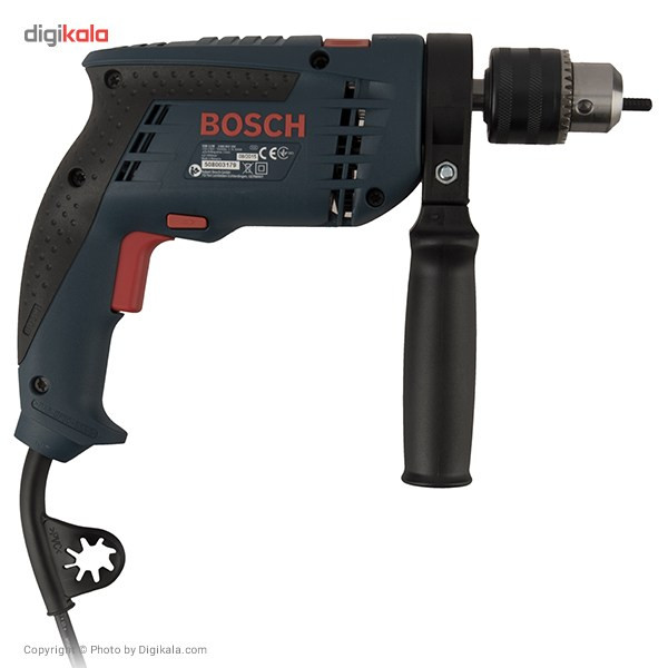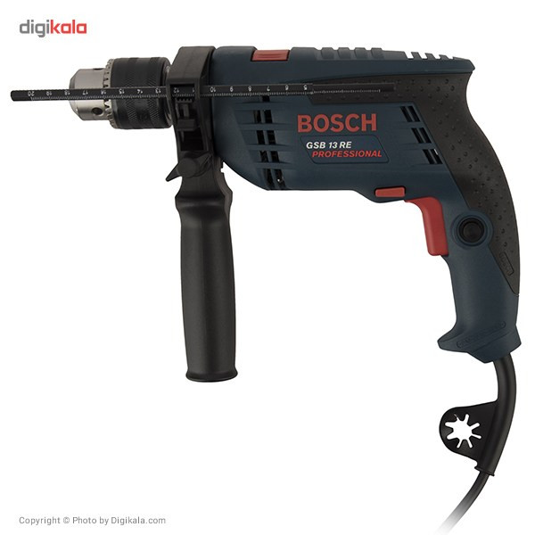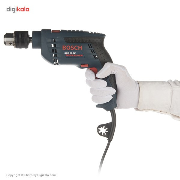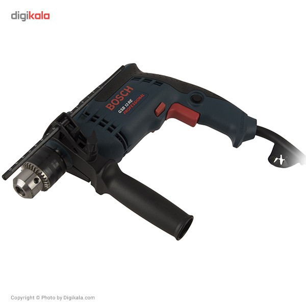 محصولی که مشاهده میکنید، دریل چکشی «GSB 13 RE» تولید شرکت «بوش» (Bosch) است. اگر برای استفادهی خانگی یا انجام کارهای نیمهصنعتی به دریلی باکیفیت از برندی معتبر نیاز دارید، این دستگاه را به شما توصیه میکنیم. این دریل از یک موتور با توان 600 وات بهره میبرد؛ موتوری که حداکثر 2800 دوربردقیقه سرعت گردش دارد. موتور GSB 13 RE علاوهبر ویژگیهای گفتهشده از قابلیت چکشی هم برخوردار است؛ یعنی برای سوراخکردن سطوح سختی مثل سیمان علاوهبر نیرویی که از طریق چرخش به سطح وارد میکند، قابلیت واردآوردن حداکثر 44800 ضربه در دقیقه هم دارد که موجب تسهیل امر سوراخکاری میشود. ویژگی دیگر این دریل قابلیت کنترل سرعت آن است که این امر بهوسیلهی شستی دیمردار صورت میگیرد و به کمک کلید اهرم کوچک بالای آن میتوان جهت چرخش دریل را تنظیم کرد. یعنی میتوان دریل را در دو وضعیت چپگرد و راستگرد قرار داد. این مدل هم مثل دیگر دریلهای چکشی از یک دستهی کمکی برخوردار بوده که در جلوی دریل قرار گرفته است؛ همچنین یک عدد خطکش تعیین عمق هم همراه آن ارائه میشود. گفتنی است شرکت بوش برای این دریل از یک سهنظام 13 میلیمتری آچارخور استفاده کرده است. حداکثر قطر سوراخکاری این دریل در چوب 25، در فلز 10 و در مصالح 15 میلیمتر است.