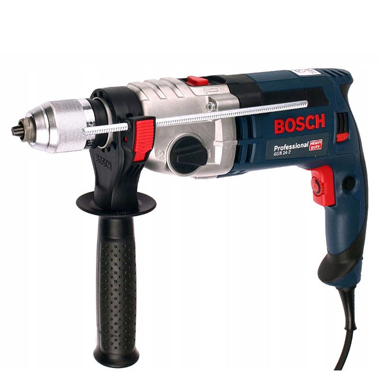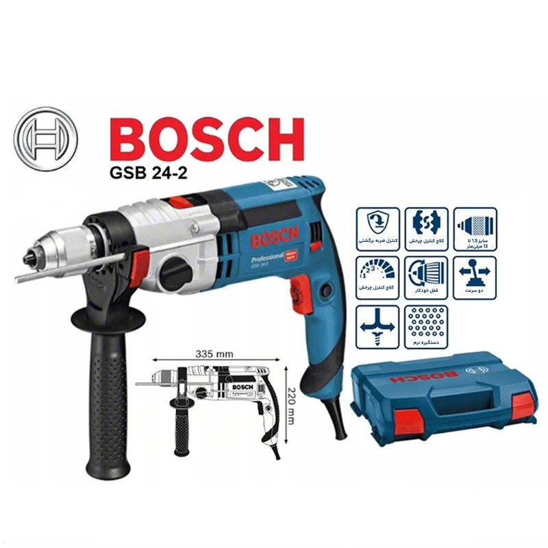 مسلما دریل GSB 24 -2 4 تولیدی شرکت صاحب سبک بوش در رده ی دریل های گیربکسی دنیا در نوع خود بی نظیر است. این دریل دارای قدرتمندترین سیستم تنظیم سرعت است .به دلیل استفاده از تکنولوژی گشتاور ثابت بر خلاف دریل های مشابه در این دریل گشتاور و قدرت کاهش پیدا نمی کند و این خصوصیت این دریل را جز مناسب ترین انتخاب ها برای سخت ترین کارها محسوب کرد. موتور این دستگاه با عملکرد بالای 1100 وات با گشتاور بالا و سیستم پیشرفته ی هوی دیوتی مخصوص بوش برای سنگین ترین کاربردها با قطرهای بزرگ (حفاری ، کار با برش های اصلی و سوراخ های برقی) ، پیچ گوشتی و همزن مناسب می باشد. این دریل دارای سیستم کنترل گشتاور با دقت بالا و یکنواخت این دریل را مناسب بستن پیچ های بسیار سنگین کرده است . بزرگترین قابلیت ویژه این دستگاه هم مجهز بودن این دستگاه به کلاچ ایمنی پیشرفته بوش می باشد . تمام موارد بالا باعث شده این مدل دریل که توسط بزرگترین شرکت تولید ابزار برقی دنیا تولید شده در نوع خود بی رقیب باشد