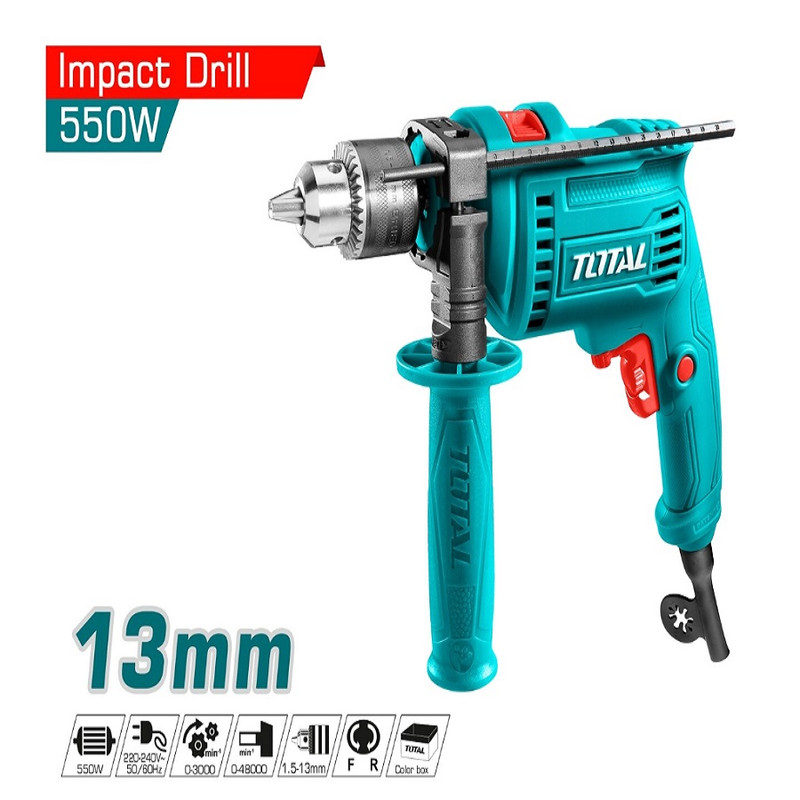 دریل چکشی 550 وات TG105136 از دریل های چکشی ساخت برند توتال است که در چین و تحت لیسانس فرانسه تولید می شود این مدل برای سوراخکاری و سوراخکاری چکشی بتن،فلزات، چوب، MDF، پلاستیک و مواد مختلف در محیط های صنعتی، تاسیساتی، نجاری، تعمیراتی و خانگی مناسب می باشد. و همچنین در میان دریل های هم رده خود قیمت مناسبی دارد این دریل چکشی را باکیفیت را با قیمت مناسب از مجموعه کیوسک ابزار تهیه نمایید