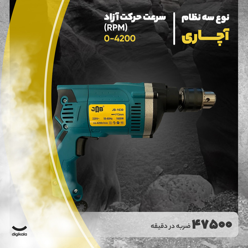 | سایر توضیحات | مجهز به موتور قدرتمند 1600 واتی با کیفیت و با طول عمر بالا در زمان سوراخ کاری و سوراخ کاری چکشی دارای بدنه ارگونومیک با وزن مناسب جهت استفاده های طولانی مدت دارای سه نظام آچاری 13 میلی متری تمام فلزی، بسیار مستحکم و قوی دارای حداکثر تعداد ضربه در حالت چکشی، برای استفاده در سخت ترین سطوح دارای بدنه کوچک وجمع وجور با حداکثر توان مجهز به دسته جانبی 360 درجه برای کاهش خستگی در کارهای طولانی مدت دارای حالت گازی سوئیچ جهت کنترل سرعت دریل از حداقل تا حداکثر دارای سوئیچ الکترونیک ضد غبار جهت جلوگیری از نفوذ غبار عملکرد چپ گرد و راست گرد. |