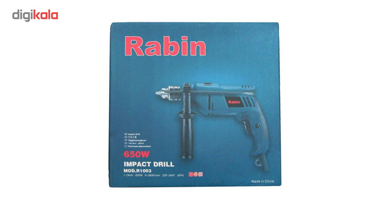دریل فوق با توان 650 وات، دستگاهی میان رده محسوب میشود که برای انجام کارهای سبک تا نیمه سنگین مناسب است. این دریل برقی از قابلیت کنترل سرعت چرخش برخوردار بوده و بازهای برابر 0 تا 2800 دور بر دقیقه دارد. برای تنظیم سرعت چرخش دستگاه یک شستی دیمردار روی دریل تعبیه شده که کار با آن بسیار آسان است. سه نظام این دریل از نوع آچارخور 13 میلیمتری بوده و برای نصب مته روی آن نیاز به آچار دارید. از دیگر ویژگیهای این محصول میتوان به قابلیت گردش آن بهصورت راستگرد و چپگرد اشاره کرد. این دستگاه اگرچه توان بالایی ندارد اما برای سوراخ کردن سطوح سیمانی و گچی نیز مورد استفاده قرار میگیرد که این ویژگی با توجه به قابلیت چکشی بودن دستگاه حاصل شده است. حداکثر قطر سوراخکاری این دریل چکشی در چوب، فلز و مصالح به ترتیب برابر 30، 13 و 16 میلیمتر است. این محصول را شرکت «رابین» تحت عنوان مدل (R1003) به بازار عرضه میکند.