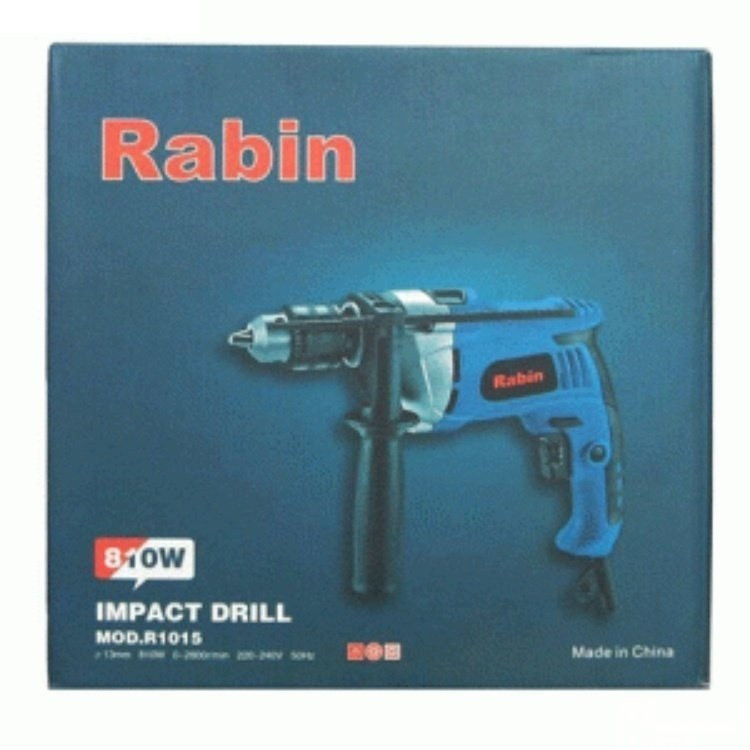 دستگاه فوق یکی از محصولات شرکت رابین بوده که علی رغم کیفیت بالای خود ازقیمت مناسبی برخوردار است.اگر قصد تهیهی یک دریل چکشی مناسب با قدرتی قابل قبول دارید، میتوانید از دستگاه فوق استفاده کنید. این دریل از توانی برابر 810 وات برخوردار است و از قابلیت کنترل سرعت گردش سود میبرد. میزان سرعت گردش این دستگاه توسط کلیدی چرخشی که روی شستی قرار دارد تنظیم میشود. بازهی سرعت چرخش این دستگاه 2800-0 دور بر دقیقه است. از دیگر مزایای این دستگاه میتوان به قابلیت چرخش ساعتگرد و پادساعتگرد آن اشاره کرد.این دستگاه دارای بدنه نیمه فلزی بوده و سه نظام این دریل چکشی از نوع 13 میلیمتری آچارخور بوده که حداکثر قطر سوراخکاری آن در چوب، فلز و مصالح به ترتیب برابر 30، 13 و 16 میلیمتر است. با کمک این دستگاه میتوانید با دقت و تسلط بیشتری به کار خود بپردازید که این ویژگی به دلیل وجود دستهی کمکی و قفل سوییچ این دریل حاصل شده است. این دسته قابل تنظیم بوده و از قابلیت چرخش 360 درجه سود میبرد. دستگاه فوق با نام (R1015 ) شناخته میشود و یکی از تولیدات شرکت «رابین» (RABIN) است.