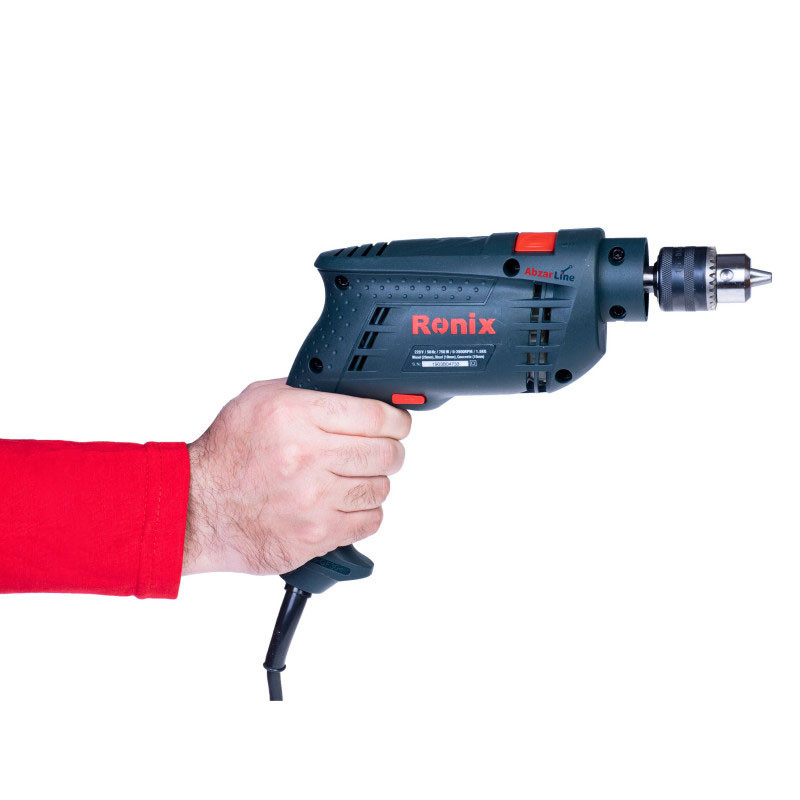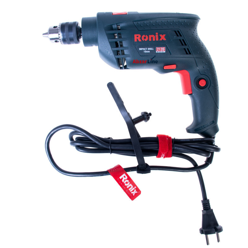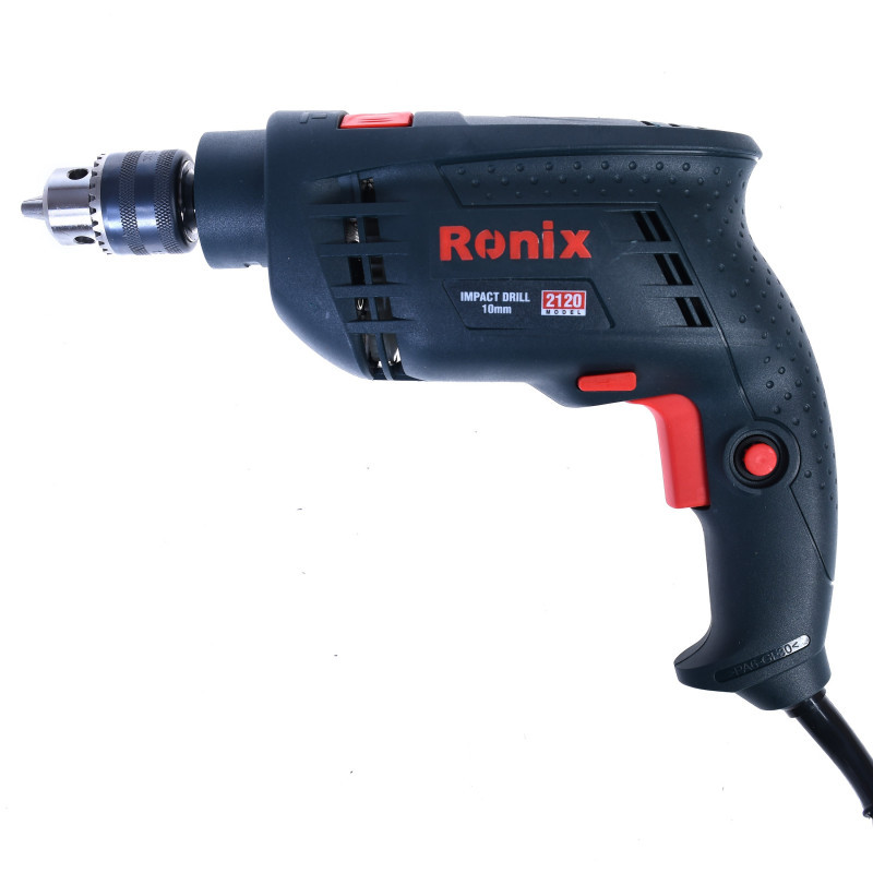 دریل چکشی 750 وات رونیکس مدل 2120، با ساز و کاری مقاوم، برای سوراخکاری و نصب قطعات در صنایع گوناگون فلز، چوب و بتن طراحی شده است. این دستگاه دارای ظرفیت سوراخکاری 20 میلی متر در چوب، 10 میلی متر در فلز و 10 میلی متر در مصالح است. ظرفیت سه نظام این دریل، 10میلی‌متر است. این سه‌نظام آچارخور، به سبب چکشی بودن و نوع کاربری، از مقاومت بالایی برخوردار است. آچار سه نظام، جزو اقلام همراه ابزار، در بسته بندی دستگاه موجود می‌باشد و به‌وسیله‌ی یک غلاف پلاستیکی به کابل دریل نصب شده است که این نیز از ویژگی‌های کاربردی دستگاه به حساب می‌آید.در قسمت بالای بدنه‌ی دریل، یک شاسی‌ دو وضعیته‌ی روان برای تغییر حالت دریل از حالت چکشی به دوار و برعکس درنظر گرفته شده که کارایی دستگاه را تا میزان خوبی بالا می‌برد. این دریل دارای کلید چپ‌گرد-راستگرد و دسترسی راحت برای تغییر جهت می‌باشد.این دریل 750 وات، دارای کابل سه‌متری با مقاومت عالی است و محل اتصال کابل با محافظ کروی و دوار، علاوه بر سهولت در استفاده و قدرت مانور بیشتر، موجب افزایش طول عمر دستگاه نیز می‌گردد.