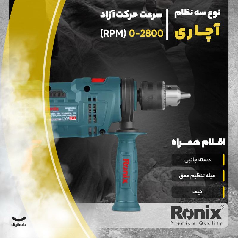 مجهز به موتور ۷۵۰ وات با سرعت گردش متغیر تا ۳۰۰۰ دور در دقیقه، این دریل امکان انجام سوراخکاری دقیق و مؤثر را فراهم میکند. قابلیت چکشی برای استفاده در مصالح سخت و سهنظام فلزی ۱۳ میلیمتری با قفل سریع، عملکردی حرفهای را به کاربران ارائه میدهد.