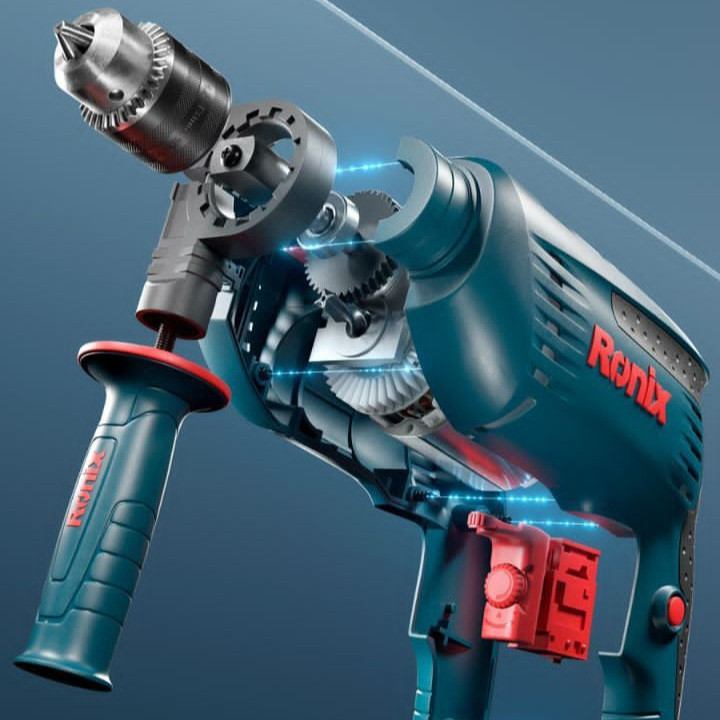 - ویژگیهای دریل: سیستم گردش چپگرد، سیستم گردش راستگرد، قابلیت کنترل سرعت، قفل سوییچ، سیستم ضربه زن