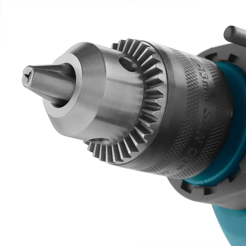 | مشخصات اقلام همراه | – مجهز به موتور قدرتمند 750 واتی باکیفیت و با طول عمر بالا – دارای بدنه ارگونومیک با وزن مناسب جهت استفاده های طولانی مدت -دارای سه نظام آچاری 13 میلیمتری تمام فلزی، بسیار مستحکم و قوی – دارای حداکثر تعداد ضربه در حالت چکشی، برای استفاده بر سخت ترین سطوح – مجهز به دسته جانبی 360 درجه برای افزایش دقت در کار در تمامی جهت ها -طراحی ارگونومیک بدنه باعث ایجاد کمترین وزن نسبت به بالاترین میزان قدرت بوده است. – دارای دیمر و حالت گازی سوییچ جهت کنترل سرعت دریل از حداقل تا حداکثر جهت انجام سوراخکاری دقیق -دارای کلید ضد غبار -قابلیت تنظیم سرعت امکان کار بر روی طیف گسترده ایی از فلزات را فراهم میکند. – دارای اهرم چپگرد/راستگرد سوییچ -مجهز به میله تنظیم عمق سوراخکاری |