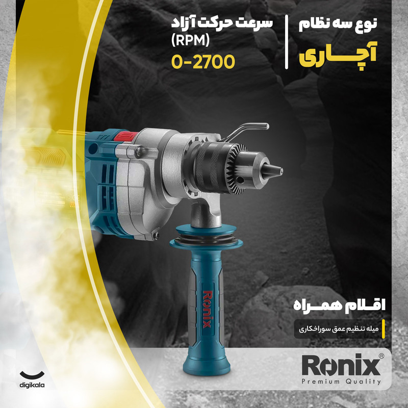 دریل چکشی نیمتنهفلزی 2290 رونیکس، انتخابی مطمئن، حرفهای و بیرقیب در تمامی کاربردهای فوق صنعتی است. این دستگاه، مجهز به موتور کارآمد و قدرتمند 900 وات است و با طراحی مهندسی و دوام بالا، عملکرد فوقالعادهای را در سختترین مواد و مصالح از خود نشان میدهد. این موتور فوق صنعتی، قادر است سرعتی بالغ بر 2800 دور در دقیقه را ایجاد کند. سهنظام آچاری 13 میلیمتری این دریل، تمامفلزی و بسیار مستحکم است و بهترین کارایی را به این دستگاه میبخشد. طراحی فوقالعاده زیبا و ارگونومیک بدنه، از مهمترین ویژگیهایی است که دریل چکشی 2290 رونیکس را از سایر رقبای خود متمایز کرده و محبوبیت این ابزار را برای کاربران صنایع مختلف دوچندان میکند. اگر به دنبال یک دریل چکشی و فوق صنعتی با عملکردی بینظیر هستید، کافی است نگاهی به محصولات موجود در بازار بیندازید و خودتان مقایسه کنید! قطعا به تمایزهای بین دریل چکشی نیمتنه فلزی 2290 رونیکس و سایر محصولات مشابه پی میبرید. پس با خرید دریل چکشی 2290 رونیکس، برای همیشه تجربه استفاده از یک محصول کارآمد و بینظیر را در ذهن خود ثبت کنید.