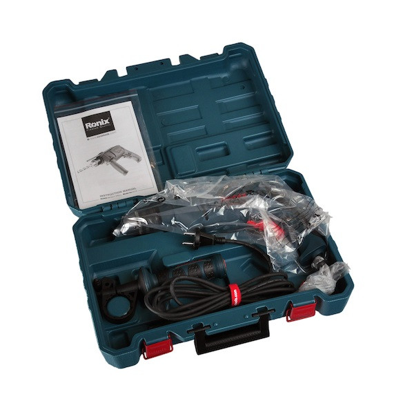 | سایر توضیحات | -مجهز به موتور پرقدرت صنعتی با توان 810 وات برای بیشترین بهره وری در حالت عادی و چکشی -استفاده از سیستم بلبرینگی دوبل در قسمت شفت جهت اثر بخشی بالا حین سوراخکاری ضربهای و طول عمر کارکرد -دارای سه نظام آچاری تمام فلزی و مستحکم -مجهز به دسته گردان ارگونومیک 360 درجه -دارای قابلیت چرخش مته به صورت چپگرد و راستگرد – دارای کلید الکترونیک دیمردار ضد غبار جهت تنظیم دقیق سرعت مته برای کار روی سطوح مختلف -مجهز به مخزن نگهدارنده مته تعبیه شده در دسته جانبی و میله تنظیم عمق |