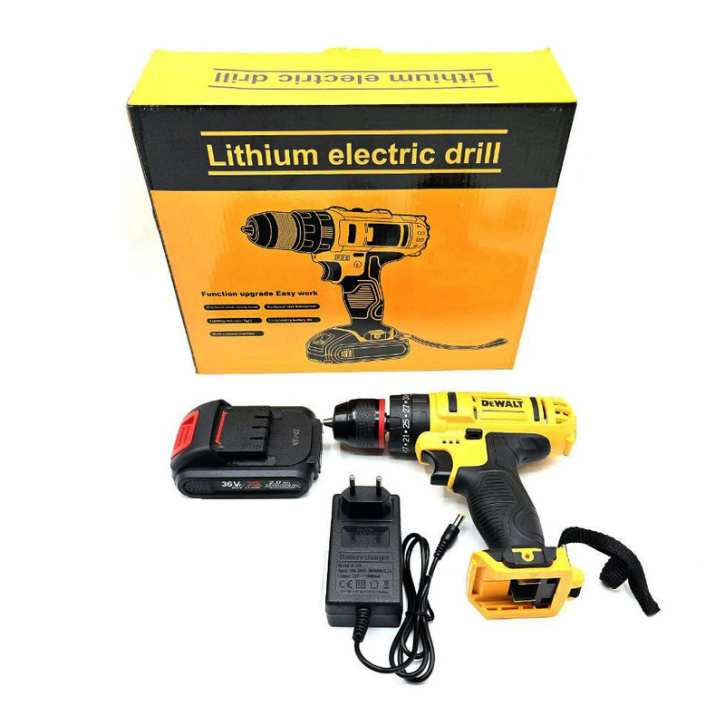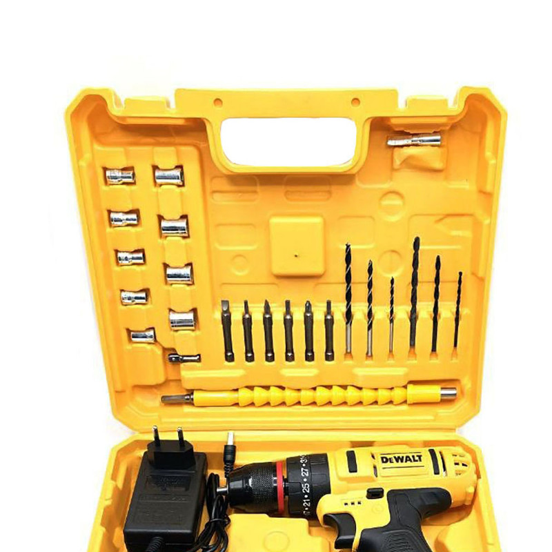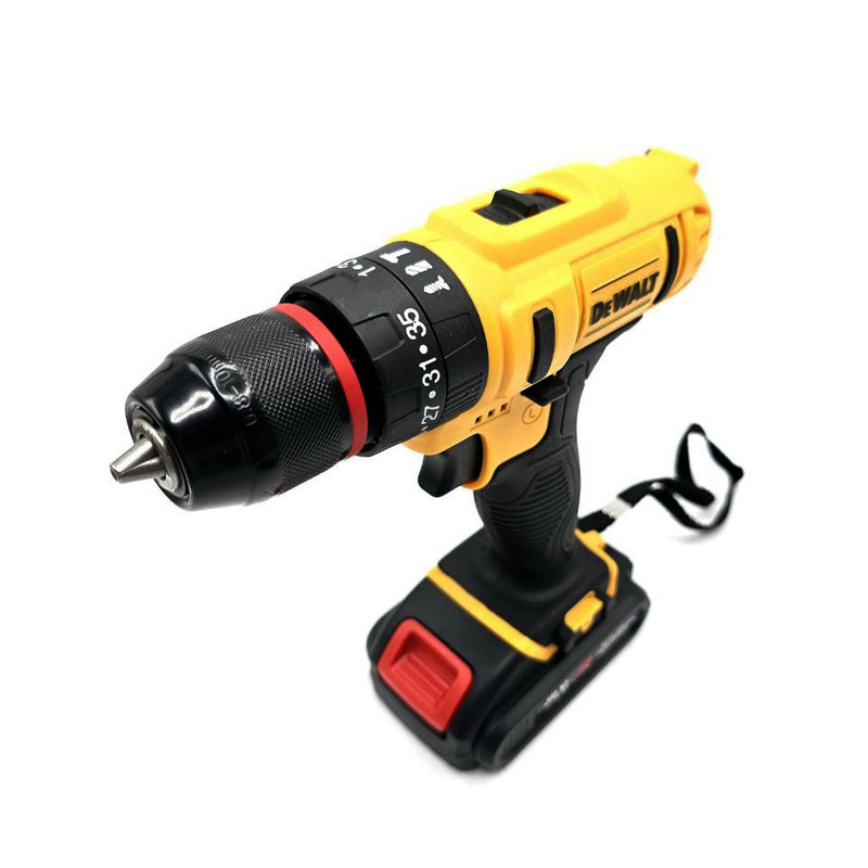دریل چکشی شارژی طرح دیوالت که این دریل چکشی شارژی با مارک دیوالت و غیر اصل ارائه میگردد و طرح دیوالت می باشد و تفاوتی با اصل آن دارد همچنان که از نظر قیمتی هم با اصل آن بسیار متفاوت می باشد .دریل چکشی شارژی طرح دیوالت که بصورت پلمپ فقط توسط ایران باس توزیع میگردد این دستگاه جایگزین مناسبی برای پیچگوشتیهای معمولی و دریل های چکشی است و موجب بالا رفتن سرعت کاربر در حین کار میشود و باید برای این منظور مجموعهای کامل از سریهای پیچگوشتی تهیه کنید. این محصول با توجه به سرعت چرخش بالایی که دارد، در حالت دریل نیز عملکرد خوبی خواهد داشت. سرعت این محصول قابلکنترل است و کاربر میتواند آن را در دو بازهی 0 تا 350 و 0 تا 1400 دور بر دقیقه تنظیم کند. گشتاور این دریل پیچگوشتی نیز مانند سرعت آن قابلتنظیم است و دارای گیربکس دو دور قدرتمند می باشد .این محصول دارای باتری شارژی لیتیوم با طول عمر بالا بوده که ولتاژی 36 ولتی دارند . وجود سهنظام اتومات 10 میلی متری بسیار با کیفیت از دیگر مزایای این دستگاه است که موجب افزایش سرعت تعویض مته و سری پیچگوشتی میشود. تمام ویژگی های مثبت و کیفیت این دستگاه باعث شده که این دستگاه در نوع خود بی رقیب باشد.این دریل چکشی شارژی طرح دیوالت به همراه یک کیف BMC که دارای محتویاتی از قبیل:مته آهن( سایز ۴، ۵ و ۶ میلیمتر)، مته چوب( سایز ۴، ۵ و ۶ میلیمتر)، رابط فنری تاشونده، سه عدد نوک پیچ گوشتی دوسو، سه عدد چهارسو، ۹ عدد بکس، و تبدیل بکس خور سر دریلی سایز ۱/۴ میباشد که موتورتمام مس و چراغ قوه روی بدنه از دیگر مزیتهای آن نیز می باشد..