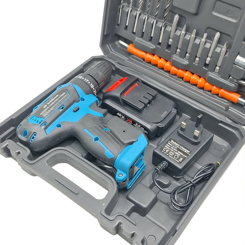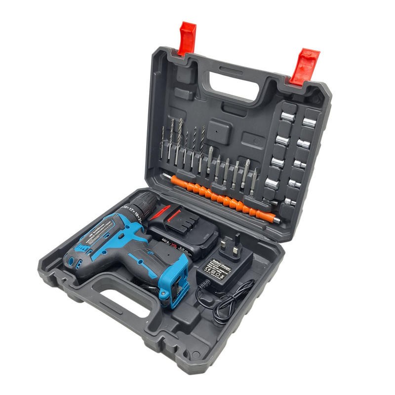 دریل چکشی شارژی 48 ولت باس مدل 48VF دارای موتوری قدرتمند است که میتواند به حداکثر دور موتوری برابر با 1350 دور بر دقیقه در حالت آزاد دست پیدا کند. تورکمتر 25 به اضافه حالت پیچ، حالت مته و حالت چکشی که روی سه نظام دستگاه تعبیه شده به کاربران این امکان را میدهد که بنا به موقعیت بتوانند از قدرت های متفاوت این دریل شارژی قدرتمند استفاده کنند. و دکمه ی مجزا 2 سرعته تعبیه شده برای این محصول کاربران را قادر میسازد تا با توجه به نیاز خود بتوانند سرعت و قدرت گردش این دریل را تنظیم نمایند. به تمامی امکاناتی که اشاره شد کلید گازی این محصول برای تنظیم سرعت را اضافه کنید و کلید تغییر حالت گردش چپگرد-راستگرد تعبیه شده برای این محصول به کاربران کمک میکند تا بدون هیچ مشکلی به باز و بستن پیچها و سوراخکاری در متریالهای مختلف بپردازد. از دیگر مزایای این محصول میتوان به نمایشگر شارژر باطری روی بدنه و چراغ ال ای دی برای روشن کردن محل سوراخکاری و داشتن 1 باطری لتیومی 48 ولت میباشد و و شارژر سوزنی اشاره کرد. سه نظام تعبیه شده برای این محصول از نوع اتوماتیک با سایز 10 میلیمتری بوده که با دقت بالایی ساخته شده است همچنین وجود ست کامل از سریها و متههای مورد نیاز و متداول در یک کیف BMC پرتابل عرضه میگردد، تا کاربران نگرانی بابت صدمه دیدن محصول برای حمل و جابه جایی نداشته باشند.