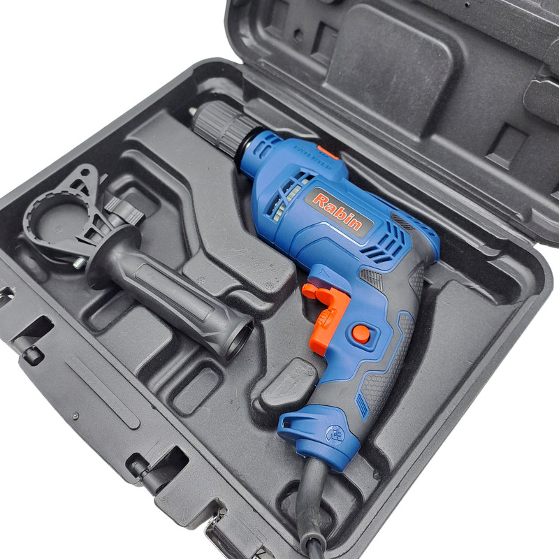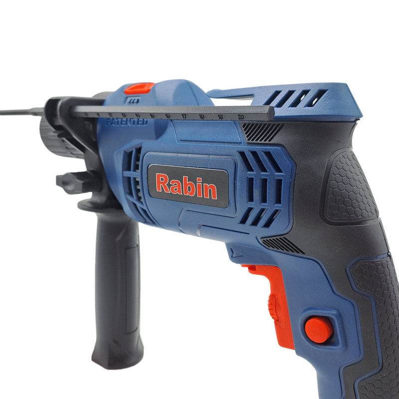 برای سوراخکاری در دیوارهای بتنی بهترین گزینه دریل های چکشی رابین می‌باشند. دریل چکشی رابین با موتور قدرتمند 650 واتی (با سیم پیچ تماما مس) و حداکثر گردش 2800دور در دقیقه که توسط کلید کنترل سرعت تا 0 دور در دقیقه محدود میشود. کلید چپ گرد و راست گرد برای راحت کردن سوراخ کاری و بیرون آوردن مته از دیوار نقش کلیدی دارد که این محصول با قرار دادن آن بیش از پیش روند کار را برای شما آسوده کرده.از ویژگی های دیگر این دریل چکشی میتوان به قفل سویچ و سه نظاماتومانیک 13 میلیمتری اشاره کرد و بدنه دستگاه از جنس سیلیکون ضد تعریق ساخته شده که در هنگام ایجاد سوراخ، ابزار در دست استاد کار لغزشی نداشته باشد.در کل دریل چکشی RABIN با قیمتی اقتصادی روانه بازار شده تا توجه مشتریان عزیز را بیش از پیش به خود جذب کند و بهترین گزینه در بین هم رده های خود است .اقلام همراه دسته کمکی 360 درجه و عمق سنج می باشد .