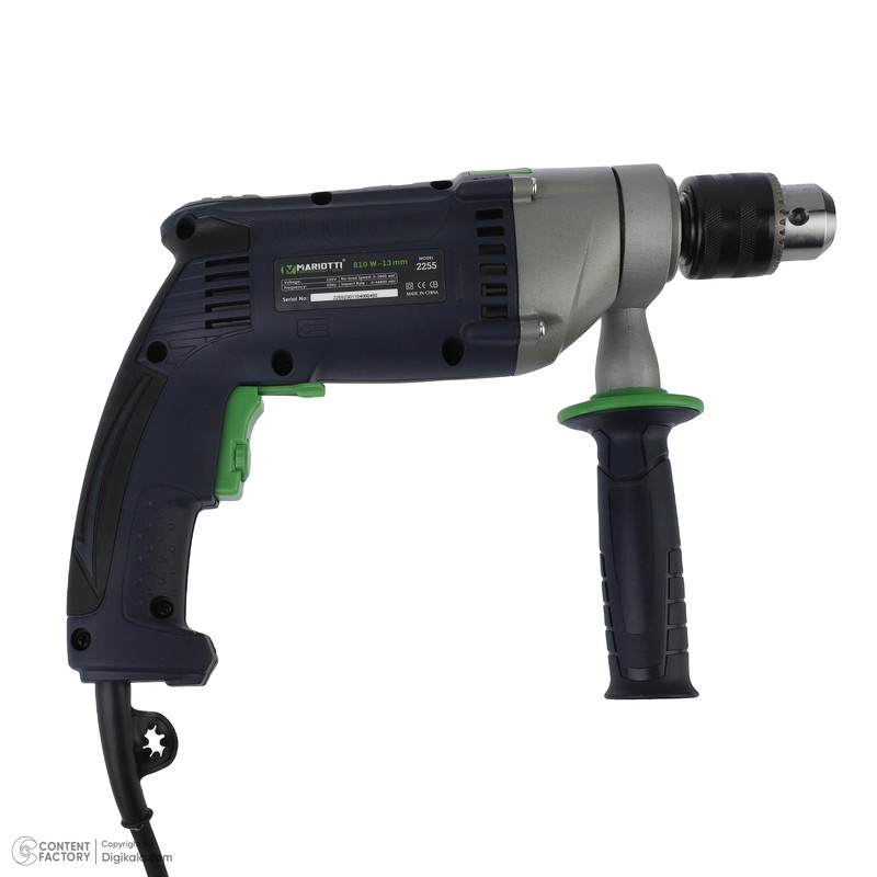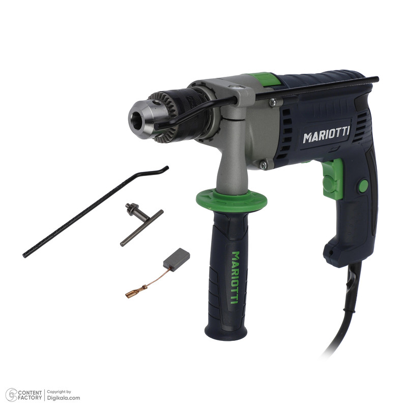 دریل چکشی ماریوتی با توان 810 وات و ولتاژ 220 ولت، یکی از قدرتمندترین دریل های موجود در بازار است که برای انجام پروژه های سنگین مناسب می باشد. تعداد ضربات 44800 در دقیقه در حالت چکشی، سرعت عمل بسیار بالایی را فراهم می کند. سیستم آچاری 13 میلی متری تمام فلزی با پوسته نیم تنه فلزی، باعث استحکام و دوام بیشتر دستگاه در برابر فشارهای سنگین می شود. قابلیت تنظیم دور از 0 تا 2850 و داشتن دو حالت کاری، انعطاف پذیری بالایی را ایجاد می کند. دسته 360 درجه فلزی با روکش TPR و کلیدهای الکترونیکی، کنترل آسان دستگاه را ممکن می سازد.ظرفیت سوراخ کاری در مواد مختلف از 13 تا 30 میلی متر، نشان دهنده توان و قدرت بالای این محصول است.در مجموع این دریل چکشی حرفه ای با ویژگی ها و امکانات فنی برتر، انتخاب مناسبی برای انجام پروژه های سخت و سنگین می باشد.