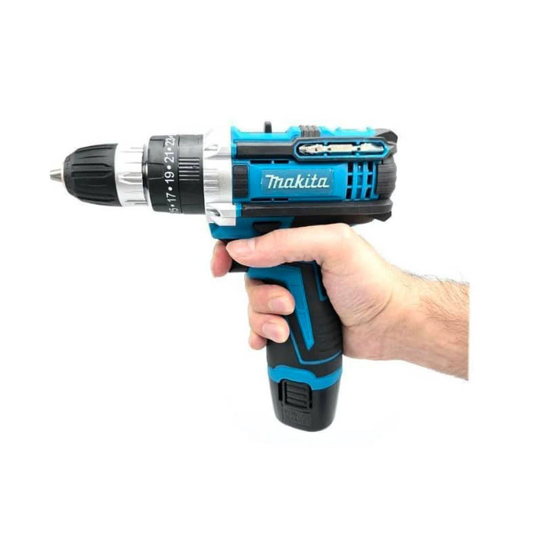 مجموعه دریل و ابزار طرح ماکیتا که با مارک ماکیتا عرضه میگردد و با اصل آن تفاوت دارد همانطور که از لحاظ قیمتی نیز متفاوت است . دریل شارژی 18 ولت که گیربکس این دستگاه دو دور بوده و دارای دو عدد باتری جدید می باشد دارای دیمر کنترل سرعت و چپگرد و راستگرد نیز است و این مجموعه که توسط ایران باس توزیع میگردد دارای کلیه ابزارهای مصرفی شامل؛ آچار فرانسه سایز۸، انبردست، دمباریک، چکش، بکس تک سایز ۴ تا ۱۳، متر ۳ متری، پیچ گوشتی دوسو و چهارسو سایز بزرگ، پیچ گوشتی نوک خور، مته آهن سایز ۵ و ۶ و ۸، مته دیوار سایز ۵ ،۶ و ۸، مته برگی سایز ۱۲ و ۱۶، ۹ عدد نوک پیچ گوشتی، تبدیل نوک پیچ گوشتی به بکس چسب برق، کاتر، فازمتر دیجیتال، آچار سه نظام، ۵ عدد تیغ کاتر، دو سایز پیچ گوشتی موبایلی دو سو و دو سایز پیچ گوشتی موبایلی چهارسو، کمان اره چوب و فلز، مجموعه سایزبندی پیچ و رولپلاک می باشد و همراه کیف BMC حرفه ای نیز است