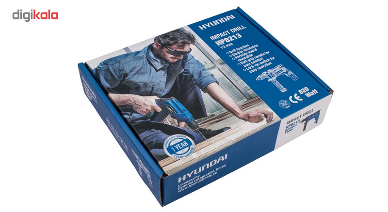 اگر قصد تهیه‌ی یک دریل چکشی مناسب با قدرتی قابل قبول دارید ، می‌توانید از دستگاه فوق استفاده کنید. این دریل از توانی برابر 820 وات برخوردار است و از قابلیت کنترل سرعت گردش سود می‌برد . میزان سرعت گردش این دستگاه توسط کلیدی چرخشی که روی شستی قرار دارد تنظیم می‌شود . بازه‌ی سرعت چرخش این دستگاه 2800-0 دور بر دقیقه است . از دیگر مزایای این دستگاه می‌توان به قابلیت چرخش ساعت‌گرد و پادساعت‌گرد آن اشاره کرد . سه نظام این دریل چکشی از نوع 13 میلی‌متری آچارخور بوده و حداکثر قطر سوراخکاری آن در چوب ، فلز و مصالح به ترتیب برابر 25، 10 و 13 میلی‌متر است . با کمک این دستگاه می‌توانید با دقت و تسلط بیشتری به کار خود بپردازید که این ویژگی به دلیل وجود دسته‌ی کمکی و قفل سوییچ این دریل حاصل شده است . این دسته قابل تنظیم بوده و از قابلیت چرخش 360 درجه سود می‌برد . دستگاه فوق با نام « HP8213 » شناخته می‌شود و یکی از تولیدات شرکت «هیوندای» (Hyundai) است.