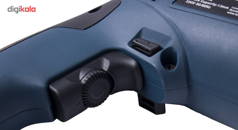 اگر قصد تهیهی یک دریل چکشی مناسب با قدرتی قابل قبول دارید، میتوانید از دستگاه فوق استفاده کنید. این دریل از توانی برابر 900 وات برخوردار است و از قابلیت کنترل سرعت گردش سود میبرد. میزان سرعت گردش این دستگاه توسط کلیدی چرخشی که روی شستی قرار دارد تنظیم میشود. بازهی سرعت چرخش این دستگاه 2800-0 دور بر دقیقه است. از دیگر مزایای این دستگاه میتوان به قابلیت چرخش ساعتگرد و پادساعتگرد آن اشاره کرد. سه نظام این دریل چکشی از نوع 13 میلیمتری آچارخور بوده و حداکثر قطر سوراخکاری آن در چوب، فلز و مصالح به ترتیب برابر 25، 10 و 13 میلیمتر است. با کمک این دستگاه میتوانید با دقت و تسلط بیشتری به کار خود بپردازید که این ویژگی به دلیل وجود دستهی کمکی و قفل سوییچ این دریل حاصل شده است. این دسته قابل تنظیم بوده و از قابلیت چرخش 360 درجه سود میبرد. دستگاه فوق با نام « HP9013 » شناخته میشود و یکی از تولیدات شرکت «هیوندای» (Hyundai) است.