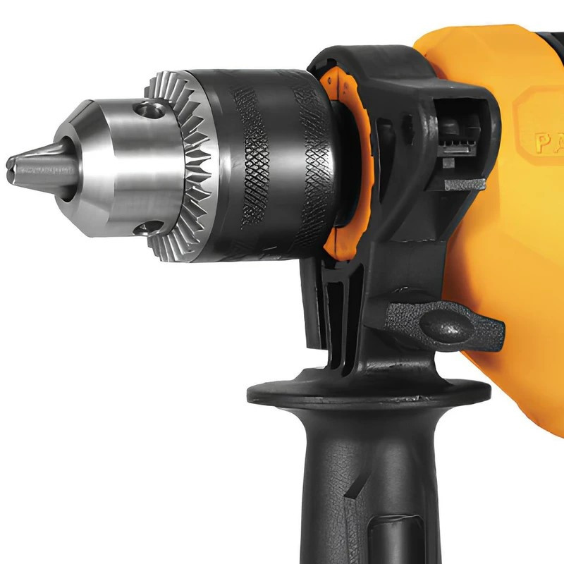 دریل چکشی 13 میلیمتری 9I-8IO ولو، مجموعهای کامل و بدون نقص از امکانات و ویژگیهایی است که مطابق نیاز کاربران مختلف خانگی و صنعتی طراحی شده است. ابزاری همه چیز تمام که میتوانید از قابلیتهای بیشمار آن استفاده کنید و از کارکردن با آن لذت ببرید! موتور قدرتمند صنعتی به ولتاژ 240-220 ولت، توان 810 وات و فرکانس 60-50 هرتز؛ سرعت در حالت آزاد در محدوده صفر تا 2800 دور در دقیقه به منظور حداکثر بهرهوری دستگاه در طول دریلکاری عادی و حالت چکشی. مقاوم و مستحکم؛ با قابلیت ایجاد نرخ ضربه بالا در حالت چکشی و مناسب استفاده در متراکمترین سطوح؛ قابلیت ایجاد حداکثر 45000 ضربه در دقیقه در حالت آزاد. سیستم بلبرینگی دوبل در قسمت شفت با هدف عملکرد موثرتر سوراخکاری ضربهای، کاهش استهلاک زودرس و طول عمر بیشتر ابزار. سهنظام تمامفلزی، آچاری، مستحکم و 13 میلیمتری؛ مناسب متههای چوب، فلز و بتن. طراحی ارگونومیک، کوچک، کمحجم و سبکوزن جهت استفاده آسانتر از ابزار؛ خوشدست و قابل حمل؛ قابل استفاده در مکانهای مختلف؛ مجهز به دسته جانبی ارگونومیک 360 درجه به منظور سهولت سوراخکاری و کنترل بهتر دستگاه؛ دارای مخزن نگهدارنده مته تعبیهشده در دسته جانبی؛ ارائهشده با میله تنظیم عمق برای سوراخکاری دقیقتر با عمق معین. کلید الکترونیک خاموش/روشن دیمردار و ضد غبار با قابلیت تنظیم دقیق سرعت برای کار روی سطوح مختلف؛ دکمه قفلکن کلید برای روشنماندن دستگاه در طول استفاده مداوم؛ دکمه چپگرد/راستگرد؛ کلید تغییر وضعیت سوراخکاری/چکشی.