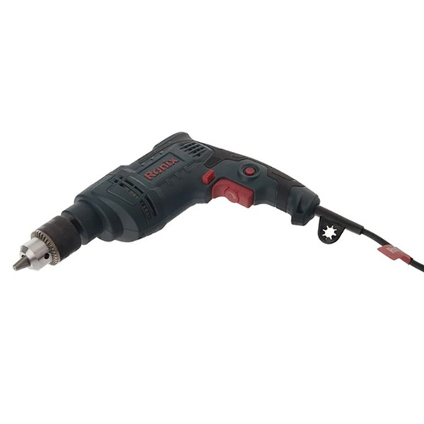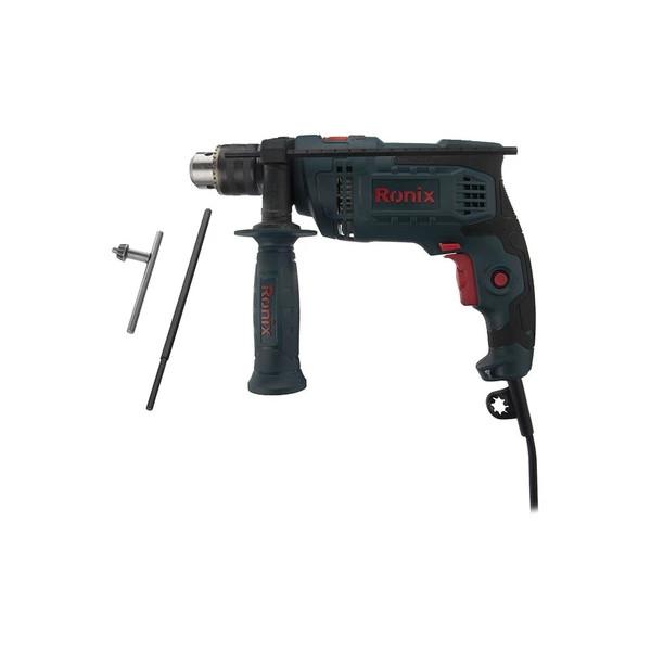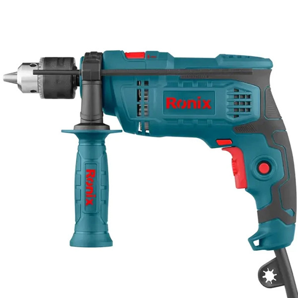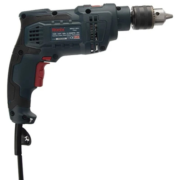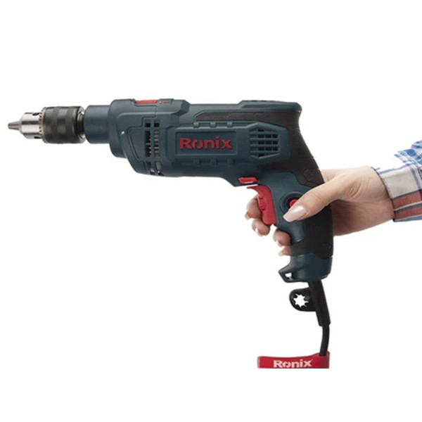 امروزه برای سوراخ کردن اجسام مختلف، از انواع دریلهای برقی یا شارژی استفاده میکنند. کار با این دستگاه کار چندان مشکلی نیست و نیاز به کسب مهارت خاصی ندارد. با توجه به میل افراد جامعه به انجام کارهای فنی در منزل، در بسیاری از خانهها نمونهای از این دستگاه دیده میشود. حتی بانوان هم میتوانند بهراحتی از این دستگاه استفاده کنند. دریلها انواع مختلفی دارند و انرژی موردنیاز خود را از برق یا باتری میگیرند. با استفاده از دریلهای معمولی قادر به سوراخ کردن اجسامی از جنس چوب، پلاستیک یا فلزات هستید. اما با دریلهای چکشی علاوه بر این موارد، دیوار، سرامیک و انواع مصالح ساختمانی را میتوانید سوراخ کنید. دریل چکشی رونیکس کد 2214 ابزاری مناسب برای سوراخکاری در انواع سطوح چوبی و فلزی است. این دریل چکشی 2 کیلوگرم وزن دارد و در ابعاد کوچک 25 × 25 × 7 سانتیمترتولید میشود. حداکثر قطر سوراخکاری آن در چوب 25 میلیمترو در فلز 13 میلیمتراست. دریل بوش مدل GSB 13 از سیستم گردشی راستگرد بهره میبرد. این ابزار، امکان سوراخکاری در حالت معمولی و ضربهای را فراهم میسازد. منبع تغذیهی این دریل، برق شهری است و با ولتاژ ورودی 220 ولت کار میکند. توان خروجی این ابزار 750 وات است و میتواند با سرعت گردش 2800 دور در دقیقه به سوراخکاری بپردازد. برای سهولت در سوراخکاری، دستهای در قسمت جلویی دستگاه قرار دارد.