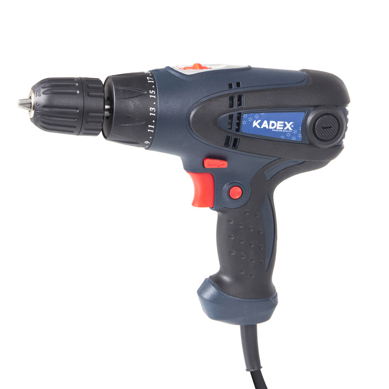 - ویژگیهای دریل: سیستم گردش چپگرد، سیستم گردش راستگرد، قابلیت کنترل سرعت، قفل سوییچ
