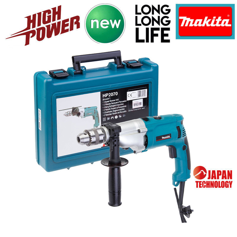 شاید بسیاری از مردم در دنیا کمپانی ماکیتا را از برترین برندها در زمینه تولید ابزار آلات صنعتی بدانند . ولی واقعیت این است که این شرکت در بیشتر زمینه های تولیدات صنایع پزشکی نفت و گاز و بسیاری از صنایع با نام های تجاری دیگر جز برترین ها بوده است . یکی دیگر از زمینه های طراحی و تولیدی این شرکت در زمینه ابزارهای پیچ گوشتی و دریل ها است که می توان گفت در این راه هم ماکیتا بی رقیب بوده است. شرکت «ماکیتا» (Makita) مدلها و گونههای مختلفی از دریل برقی یا شارژی را تولید کرده که مدل HP 2070 یکی از بهترین آنها است. این محصول با برق شهری کار میکند و امکان استفاده از آن بهعنوان دریل ساده و چکشی هم وجود دارد. سرعت گردش این محصول در حالت آزاد تا 2900 دوربردقیقه میرسد. ماکیتا این محصول خود را بهصورت ارگونومیک و با ابعادی بسیار مناسب تولید میکند. شرکت ماکیتا با سابقهای طولانی در خصوص طراحی و تولید ابزارهای مختلف، محصولات خود را با کیفیتی مناسب تولید و به بازار عرضه میکند. بطور کلی تمام موارد کیفی این دریل چکشی گیربکسی باعث شده این محصول در نوع خود در دنیا بی رقیب باشد.