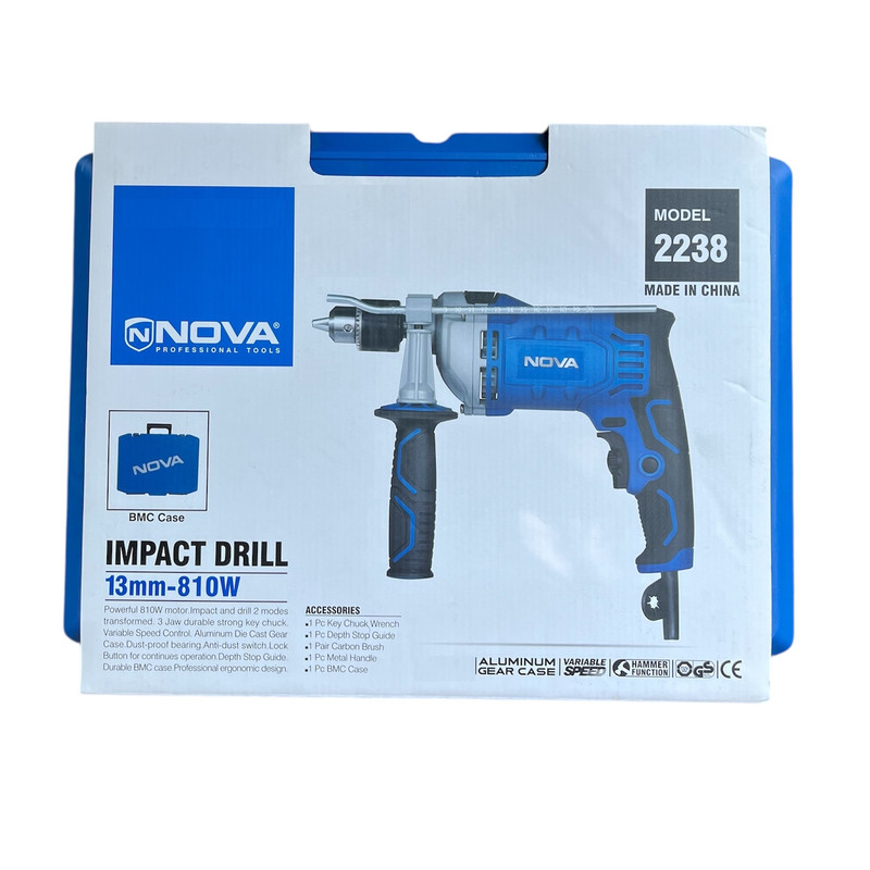 دریل گیربکسی 13 میلیمتری 810 وات مدل 2238 ، یکی از ابزارهای حرفهای و صنعتی برند نووا است که با طراحی و ساختار قدرتمند خود به عنوان یکی از بهترین گزینهها برای کارهای سنگین و صنعتی در تمامی حوزه ها شناخته میشود. این دستگاه با موتور 810 وات واقعی، برای سوراخکاری و کارهای چکشی در مواد سخت مانند بتن به خوبی عمل کرده و از سرعتی بالغ بر 2800 دور در دقیقه بهره مند می باشد. ین دریل مجهز به سه نظام آچاری 13 میلیمتری است که امکان استفاده از متههای مختلف را برای سوراخکاری در مواد مختلف فراهم میکند.
