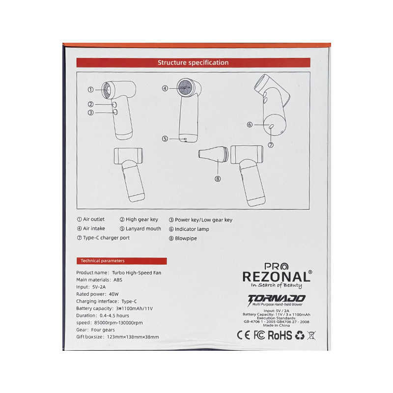 موپران شارژی رزونال دارای موتور BLDC توربو می باشد و قدرت موتور برابر با یک سشوار است . این موپران دارای دو سری متمرکز کننده باد و کابل شارژ تایپ سی است و یک ابزار ایده ال برای آرایشگران می باشد .