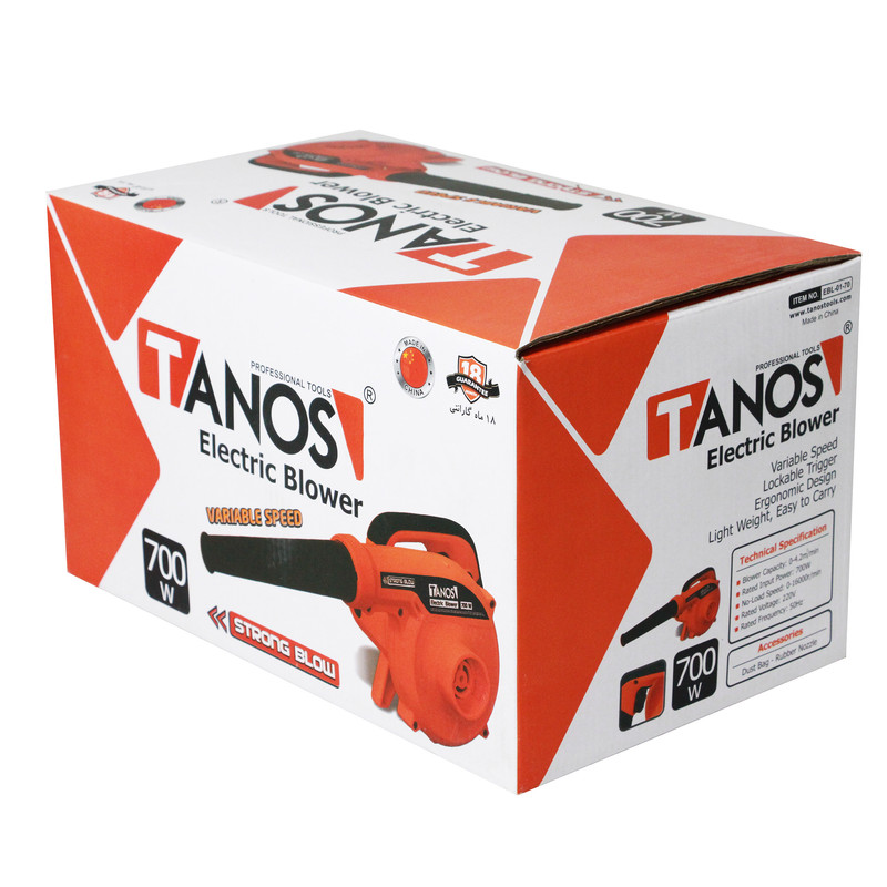 این محصول نوعی دستگاه دمنده و مکنده بوده که توانی برابر 700 وات دارد. با کمک این دستگاه میتوان باد را با فشاری بالا بهسمت سطح مورد نظر متمرکز کرد. معمولا از این قدرت باد برای تمیز کردن گردوغبار استفاده میشود. برای این کار نازلی پلاستیکی روی دستگاه قرار دارد. با تغییر محل نازل پلاستیکی روی دستگاه میتوان آن را به یک دستگاه مکنده تبدیل کرد. برای این منظور یک کیسهی جمعآوری زباله نیز در نظر گرفته شده است. سرعت چرخش موتور این دستگاه 16000 دور بر دقیقه بوده و قادر است در مدتزمان یک دقیقه 3.5 متر مکعب هوا را از نازل خود خارج سازد. از دیگر مزایای این محصول میتوان به قابلیت تنظیم سرعت باد خروجی آن اشاره کرد. این دستگاه دمنده و مکنده را شرکت تانوس (Tanos) تحت عنوان مدل « EBL_700W» به بازار عرضه میکند.