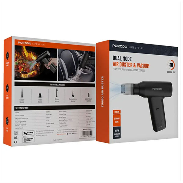جارو و دمنده دو حالته Porodo Lifestyle یکی از حرفه‌ای‌ترین ابزارهای نظافتی برای کسانی است که می‌خواهند گرد و غبار را به شکلی سریع، کارآمد و بی‌دردسر از روی وسایل خود پاک کنند. این دستگاه علاوه بر عملکرد فوق‌العاده، طراحی قابل حمل و امکانات پیشرفته‌ای دارد که آن را به یک محصول همه‌کاره تبدیل کرده است. موتور قدرتمند با سرعت 130,000 دور در دقیقه