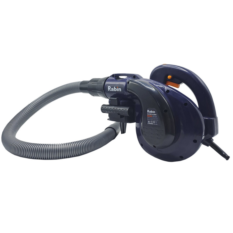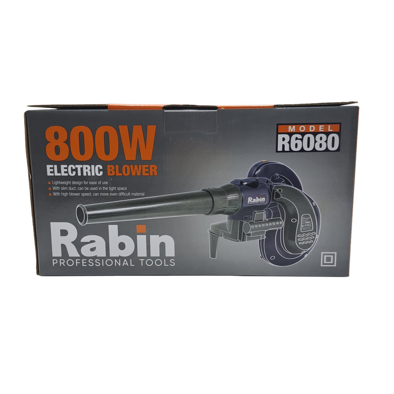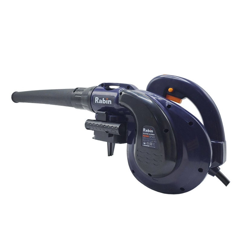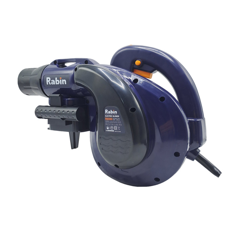بلوور برقی وسیله ای جهت دمش هوا با قدرت بالا میباشد. این دستگاه عمدتا جهت پاکسازی محیط های مختلف استفاده بسیار بالایی دارد. بلوور برقی رابین مدل R6080 قابلیت چرخش فن از 3000دور در دقیقه تا 13000 دور در دقیقه را دارد تا هوا را با سرعت بالا به میزان 0 – 3.5 متر مکعب در دقیقه بدمد. این دستگاه دارای قدرت 800 وات میباشد تا عملیات دمندگی به راحتی و بدون فشار به دستگاه انجام شود. همچنین میتوان از این دستگاه جهت مکش نیز استفاده نمود. مهمترین ویژگی و وجه تمایز این دستگاه، وجود دیمر (کلید تغییر سرعت دمنده گی) بر روی خود بدنه میباشد تا کاربر حین کار با این دستگاه براحتی میزان دمش هوا را تنظیم نماید و نیازی به خاموش نمودن دستگاه جهت تنظیم مقدار دمش هوا نباشد. در مسیر دمش این دستگاه میتوان از لوله لاستیکی این دستگاه که داخل بسته بندی آن وجود دارد استفاده نمود تا دمش هوا متمرکزتر انجام شود و همچنین دستگاه دورتر قرار گیرد تا گرد و غبار نزدیک به کاربر نشود. این بلوور (دمنده/مکنده) دارای کلید قفل کن میباشد تا در هنگام کار برای مدت طولانی، کاربر این کلید را فشار داده و بطور طولانی و مداوم از این دستگاه استفاده نماید. تمامی مراحل ساخت موتور این دستگاه از قبیل لاک گیری، بالانس، سیم پیچی و… در آرمیچر و بالشتک این دستگاه با استفاده از دستگاه های تمام اتوماتیک مطابق با آخرین فناوری روز دنیا تولید شده تا عمر مفید دستگاه به حداکثر برسد. بعلت دور بالای این دستگاه از بلبرینک با کیفیت و تقویت شده در این دستگاه استفاده شده است. این دستگاه دارای طراحی ارگونومیک جهت خوشدستی و راحتی کاربر در حین کار طراحی شده و همچنین بدنه این دستگاه دارای عایق دوبل و از جنس PA6+GF30 که بهترین مواد جهت ساخت بدنه ابزار آلات برقی میباشد استفاده شده است. این دستگاه دارای کیسه جمع کننده گرد و غبار جهت جمع آوری گرد و غبار نیز میباشد.
