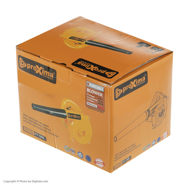 دستگاه دمنده و مکنده پروکسیما مدل PT-1505 یکی از محصولات پرمصرف و پرکاربرد این شرکت به حساب میآید. این دستگاه همانطور که از نامش پیداست، قابلیت دمندگی و مکندگی را بر عهده دارد. این دستگاه در ابعاد 29×15×18 سانتیمتر و دارای وزن 1060 گرم است. روی دستگاه دکمهای به نام قفل سوییچ تعبیه شده که با فشار دادن آن دستگاه در حالت روشن میماند. جالب است بدانید که از این دستگاه بخاطر داشتن قابلیت دمندگی و مکندگی میتوانید به عنوان یک جاروبرقی ضعیف استفاده کنید. از کاربردهای این دستگاه میتوان به جمع آوری گردوغبار و مواد دورریختنی اشاره کرد. لازم به ذکر است این دستگاه دارای یک کیسه جمع آوری بوده که بهوسیلهی لولهی خرطومی آن گردوغبار و زبالهها را به داخل کیسه میکشاند. خوب است بدانید این دستگاه قابل روشن شدن با برق شهری بهوسیلهی کابل برقی که در بستهبندی وجود داشته، است. از دیگر ویژگیهای بارز این محصول میتوان به کاربرد آن در منازل و ادارات و قدرت موتور 600 وات اشاره کرد.