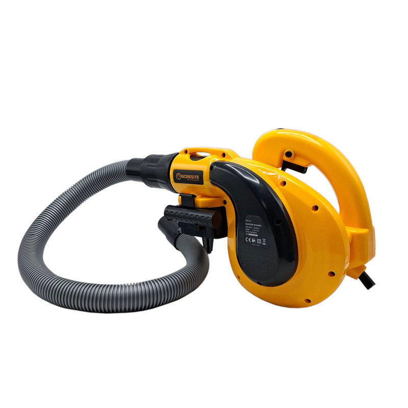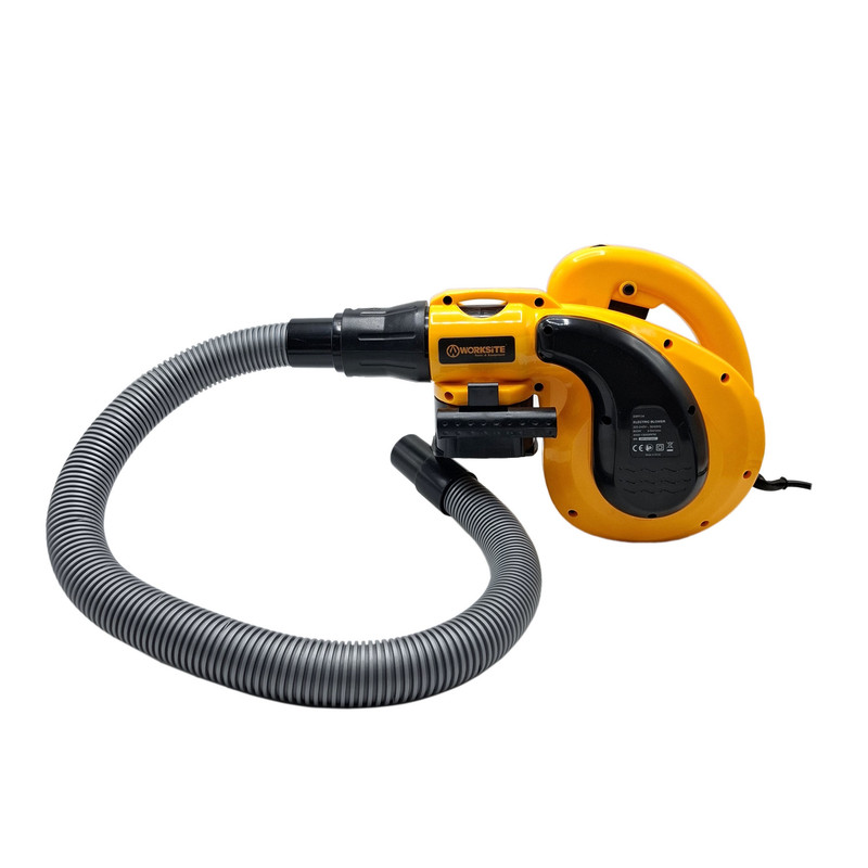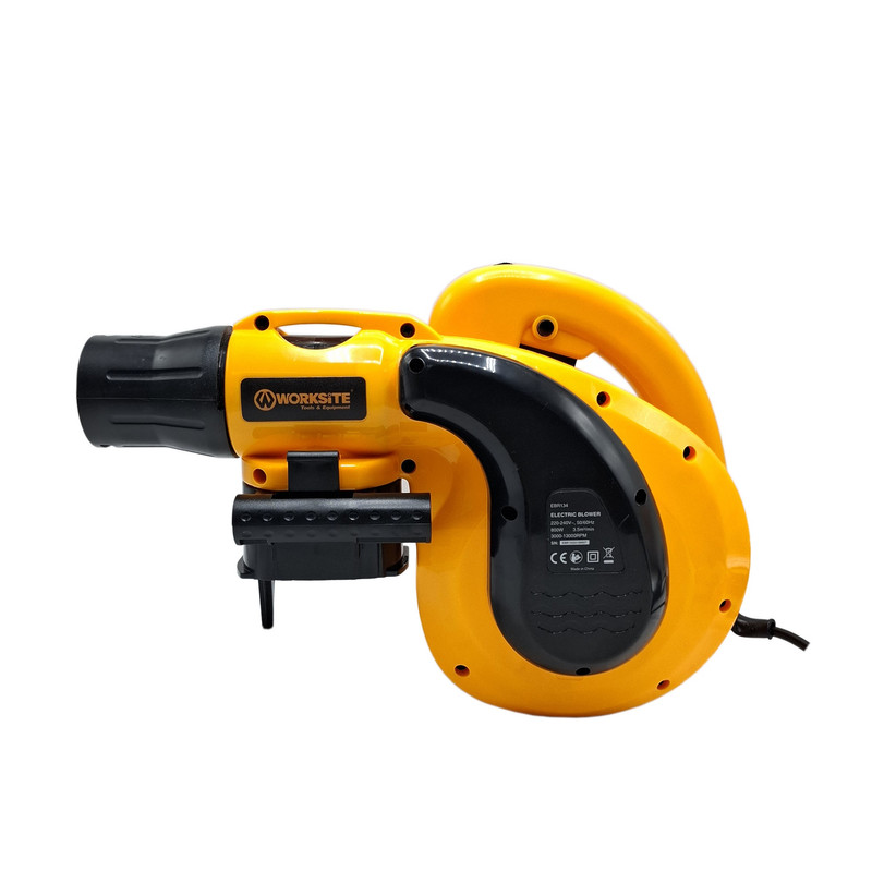 بلوور برقی ورک سایت وسیله ای جهت دمش هوا با قدرت بالا میباشد. این دستگاه عمدتا جهت پاکسازی محیط های مختلف استفاده بسیار بالایی دارد. بلوور برقی ورک سایت مدل EBR134 قابلیت چرخش فن از 3000دور در دقیقه تا 13000 دور در دقیقه را دارد تا هوا را با سرعت بالا به میزان 0 – 3.5 متر مکعب در دقیقه بدمد. این دستگاه دارای قدرت 800 وات میباشد تا عملیات دمندگی به راحتی و بدون فشار به دستگاه انجام شود. همچنین میتوان از این دستگاه جهت مکش نیز استفاده نمود. مهمترین ویژگی و وجه تمایز این دستگاه، وجود دیمر (کلید تغییر سرعت دمنده گی) بر روی خود بدنه میباشد تا کاربر حین کار با این دستگاه براحتی میزان دمش هوا را تنظیم نماید و نیازی به خاموش نمودن دستگاه جهت تنظیم مقدار دمش هوا نباشد. در مسیر دمش این دستگاه میتوان از لوله لاستیکی این دستگاه که داخل بسته بندی آن وجود دارد استفاده نمود تا دمش هوا متمرکزتر انجام شود و همچنین دستگاه دورتر قرار گیرد تا گرد و غبار نزدیک به کاربر نشود. این بلوور (دمنده/مکنده) دارای کلید قفل کن میباشد تا در هنگام کار برای مدت طولانی، کاربر این کلید را فشار داده و بطور طولانی و مداوم از این دستگاه استفاده نماید. تمامی مراحل ساخت موتور این دستگاه از قبیل لاک گیری، بالانس، سیم پیچی و… در آرمیچر و بالشتک این دستگاه با استفاده از دستگاه های تمام اتوماتیک مطابق با آخرین فناوری روز دنیا تولید شده تا عمر مفید دستگاه به حداکثر برسد. بعلت دور بالای این دستگاه از بلبرینک با کیفیت و تقویت شده در این دستگاه استفاده شده است. این دستگاه دارای طراحی ارگونومیک جهت خوش دستی و راحتی کاربر در حین کار طراحی شده و همچنین بدنه این دستگاه دارای عایق دوبل و از جنس PA6+GF30 که بهترین مواد جهت ساخت بدنه ابزار آلات برقی میباشد استفاده شده است. این دستگاه دارای کیسه جمع کننده گرد و غبار جهت جمع آوری گرد و غبار نیز میباشد.