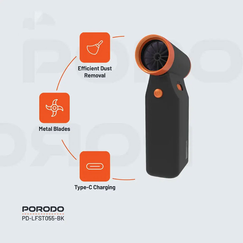 شارژ دستگاه از طریق پورت Type-C انجام می‌شود و تنها ۲ ساعت زمان برای شارژ کامل با ورودی ۵ ولت/۲ آمپر نیاز دارد. چه برای پاکسازی وسایل الکترونیکی، صفحه‌کلید یا سطوح حساس، دمنده هوای Porodo، کارایی و راحتی را در یک دستگاه جمع‌وجور به شما ارائه می‌دهد.