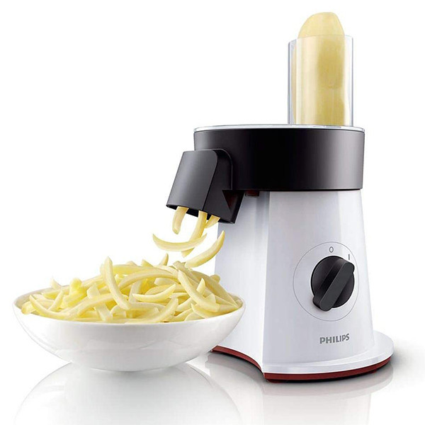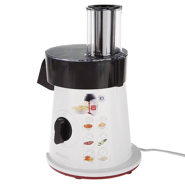 رنده برقی فیلیپس HR1388 با قدرت 200 وات و تنظیمات سرعت یک حالته با پنج تیغه دیسکی. جنس تیغه ها از فولاد ضد زنگ هستند. انواع میوه و سبزیجات سفت یا نرم را همانند کَره برش می دهند. این سالاد خرد کن برقی قادر به انجام دادن انواع برش های حلقه ای و رشته ای در اندازه های مختلف از 1 الی 6 میلی متر است. برای سرخ کردن کدو، بادمجان، سیب زمینی، پیاز و موارد دیگر بسیار کار ساز خواهد بود. رنده برقی سیب زمینی نام دیگر این دستگاه است و به شکل خلالی در اندازه های مختلف، آنها را قارچ می کند. تمام قطعات قابل تفکیک، و امکان شستشوی آنها در ماشین ظرفشویی وجود دارد. در زیر بدنه، جایگاه مخصوص کابل برق قرار دارد و در آنجا به شکل ایمن جمع می شود.