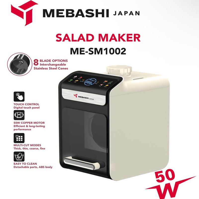 سالاد ساز مباشی ME-SM1002 یک دستگاه همهکاره و جمعوجور برای آشپزخانههای مدرن است که با پنل کنترل لمسی، موتور مسی ۵۰ وات و ۸ تیغه استیل قابل تعویض به شما امکان میدهد در کمترین زمان انواع سبزیجات، میوه و پروسسهای آشپزی را خرد، ریز، ورقهای و خلال کنید. اگر دنبال یک رنده برقی مباشی هستید که کیفیت و دوام را همراه با کاربری آسان ارائه دهد، ME-SM1002 گزینهای حرفهای و کمصدا است.