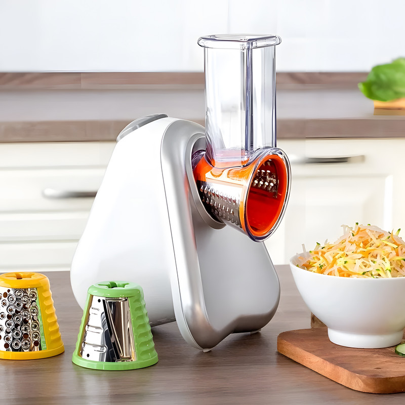 رنده برقی مولینکس مدل DJ755 از دیگر محصولات شرکت مولینکس (Moulinex) است که از طراحی زیبا و کارایی بالایی برخوردار است. کاربری این دستگاه فوقالعاده ساده بوده و کافی است با توجه به مواد غذایی موردنظر تیغه یا رنده مربوطه را در دستگاه قرار دهید. به همراه این دستگاه کوچک رنده و برشزنهای متعددی عرضه شده که مصرفکنندگان را در تهیه سالاد و آمادهسازی وعده غذاهای گیاهی و سالم یاری میکند. فعالیت رنده برقی مولینکس مدل DJ755 بهراحتی از طریق دکمه روی دستگاه آغاز می شود. استفاده از مولینکس مدل DJ755 نهتنها ساده است، بلکه طراحی لوله ورودی و خروجی میوه و سبزیجات ایمنی لازم را نیز تأمین نموده و کاربر بدون نگرانی در کوتاهترین زمان میتواند آنها را خرد، رنده، و یا لایهلایه کند. این دستگاه نهتنها با رندههای ریزودرشت میتواند شما را در تهیه سالاد یاری کند، بلکه مواد غذایی متفاوتی نظیر پنیر را نیز میتوان با آن رنده کرد. علاوه بر این صفحه برشزن یا اسلایسر هم میتواند کاربردهایی نظیر لایهلایه کردن سیبزمینی داشته و لذت تهیه میان وعده هایی دیگر چون چیپس را برای شما به همراه داشته باشد. این دستگاه در ابعاد کوچکی طراحیشده و کابل آن نیز در قسمت پشتی دستگاه بهراحتی جمع میشود. رندهها همیشه جزو ابزارهای پرکاربرد در تهیه انواع غذا و سالادهای گوناگون به شمار میآیند و طی سالهای اخیر همانند دیگر لوازم آشپزخانه، نمونه برقی این ابزار کاربردی آشپزی نیز به جمع لوازم برقی آشپزخانه پیوسته است. لازم به ذکر است سازنده این دستگاه شرکت مولینکس (Moulinex) یک شرکت بزرگ فرانسوی است که از سال 1937 میلادی آغاز به کار کرده است. این شرکت در زمینههای مختلفی ازجمله ساخت لوازم برقی خانگی، فعالیتهای گستردهای انجام میدهد.