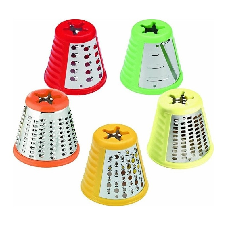 - سایر توضیحات: رنده برقی مولینکس، ساخت کشور فرانسه، دارای پنج عدد رنده مختلف شامل: رنده ریز و رنده درشت، رنده پوره کن سیب زمینی، رنده پوره کن پنیر، رنده حلقه ای (چیپسی)، ساخت کشور فرانسه