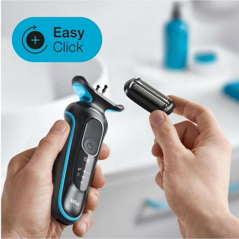 ریش تراش براون مدل 51M1000s با 3 عدد تیغه انعطاف پذیر به طور روان با خطوط صورت شما سازگار است. بیشترین سازگاری را با ریش شما پیدا می کند. در حالی که سیستم EasyClean تمیز کردن سریع و ساده را امکان پذیر می کند- بدون نیاز به برداشتن سر ماشین اصلاح.