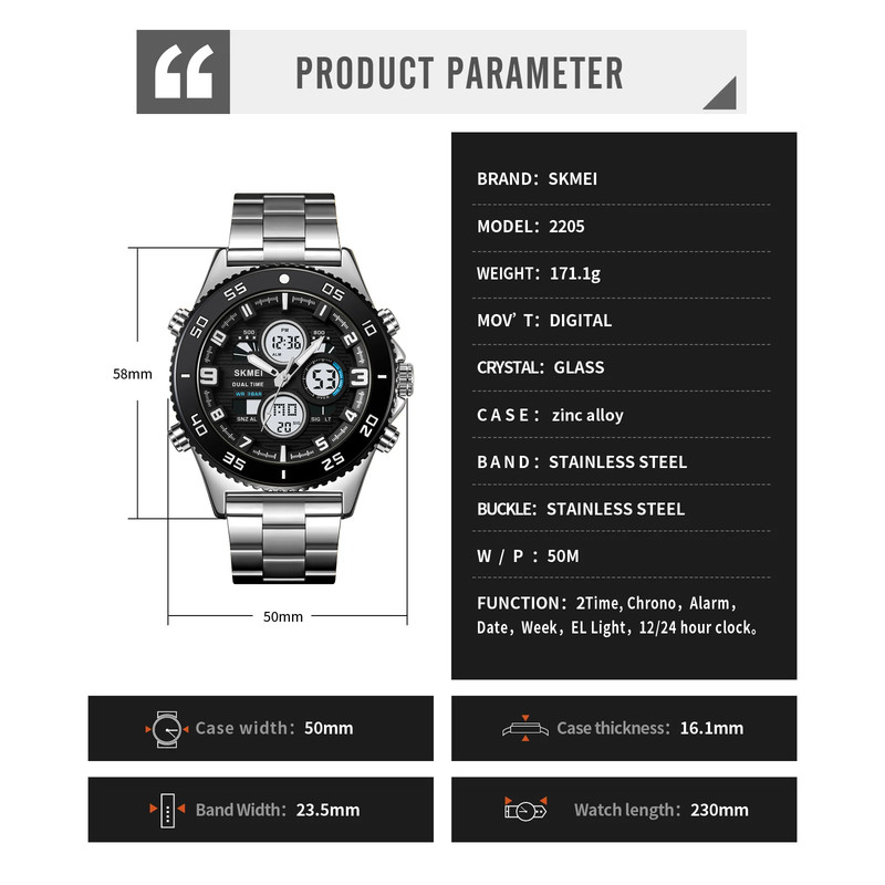 این روزها دیگر همه به تاثیر ساعت بر تیپ و استایل آگاهی کامل دارند. کمتر کسی پیدا می شود که تصور کند یک ساعت فقط کالایی برای نشان دادن زمان است.هر چه جلوتر می رویم جای خالی این محصول لوکس و زیبا را روی مچ خیلی از افراد مشاهده می کنیم. زیرا این روزها صنعت مد و فشن رابطه مستقیمی با استفاده از این اکسسوری جذاب دارد.شاید به نظر شما آنقدری که می‌گویند خرید یک ساعت شیک و استفاده از آن اهمیت نداشته باشد، اما بد نیست بدانید که اگر در انتخاب خود دقت کرده باشید و متناسب با آن پوشش مناسب را انتخاب کنید، آن ساعت مچی شگفت انگیز می تواند غوغایی در ظاهر شما بپا کند. شاید در نگاه نخست این زیبایی و جذابیت خیلی محسوس نباشد، اما یقینا تاثیرش را بر ناخودآگاه بینندگان خواهد گذاشت. ساعت های مچی به عنوان یک همراه همیشگی مناسب هر مکانی هستند. باشگاه ورزشی، استخر شنا، مسافرت، محل کار، قرار های دوستانه و عاشقانه و در کل برای استفاده روزمره مناسب هستند. شرکت اسکمی با ارائه مدل های مختلف اینبار ساعتی فوق العاده جذاب با تنوع رنگی چشم نواز را به تولید رسانده است.در این مدل به دلیل طراحی و رنگ بندی جذاب که در آن بکار رفته است حس خوشایندی را به شما و طرف مقابل القا میکند.از قابلیت های این ساعت میتوان به ضد آب تا عمق 30 متر , کرنومتر , آلارم , نمایش 12/24 ساعته , نمایش همزمان 2 زمان مختلف , چراغ صفحه , تقویم …. اشاره کرد.