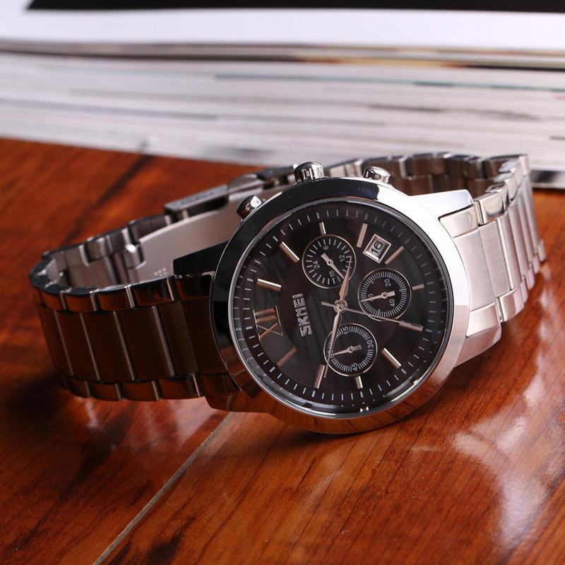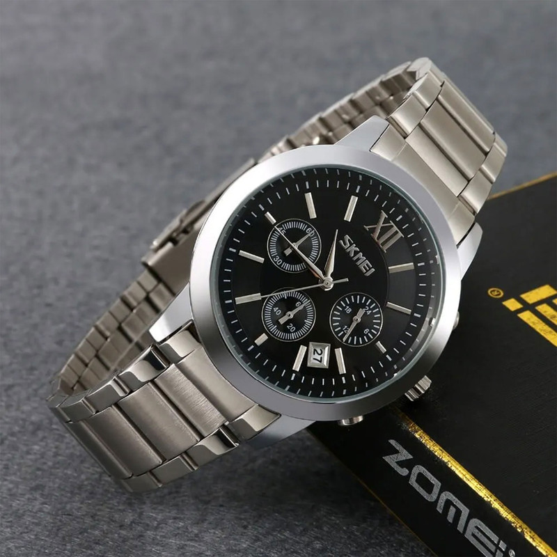 این روزها دیگر همه به تأثیر ساعت بر تیپ و استایل آگاهی کامل دارند. کمتر کسی پیدا میشود که تصور کند یک ساعت فقط کالایی برای نشان دادن زمان است. ساعتهای مچی به عنوان یک همراه همیشگی مناسب هر مکانی هستند. شرکت اسکمی با ارائه مدلهای مختلف این بار ساعتی فوقالعاده جذاب با تنوع رنگی چشمنواز را به تولید رسانده است. در این مدل به دلیل طراحی و رنگبندی جذاب که در آن بکار رفته است حس خوشایندی را به شما و طرف مقابل القا میکند. ساعت مچی عقربهای مردانه اسکمی مدل 9097 BK یک انتخاب مناسب برای استفاده روزمره است. جنس بند و بدنه این ساعت استیل بوده و رنگ آنها نقره ای است. فرم قاب این ساعت گرد و تشکیل شده از استیل ضد زنگ است. قطر قاب این ساعت 54 میلیمتر و ضخامت بدنهای در حدود 10 میلیمتر دارد. قفل این ساعت تاشو با محافظ بوده و جنس شیشه آن معدنی است. از دیگر ویژگیهای خوب این کالا میتوان به داشتن میزان 3 ATM مقاومت در برابر فشار آب اشاره کرد که این میزان برابر 30 متر است. امروزه زمان در زندگی افراد تأثیر به سزایی دارد به صورتی که اگر اطلاعی از آن نداشته باشیم نمیتوانیم کارها را صحیح و با برنامه ریز پیش ببریم. به همین دلیل ساعت مچی یکی از اصلیترین اکسسوریها برای بسیاری از افراد محسوب میشود. ما استفاده از ساعت با کاربرد روزمره را به شما پیشنهاد میکنیم.