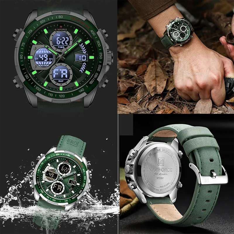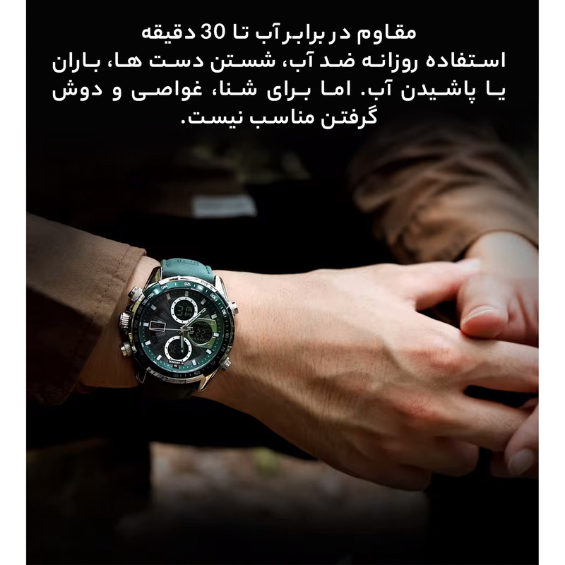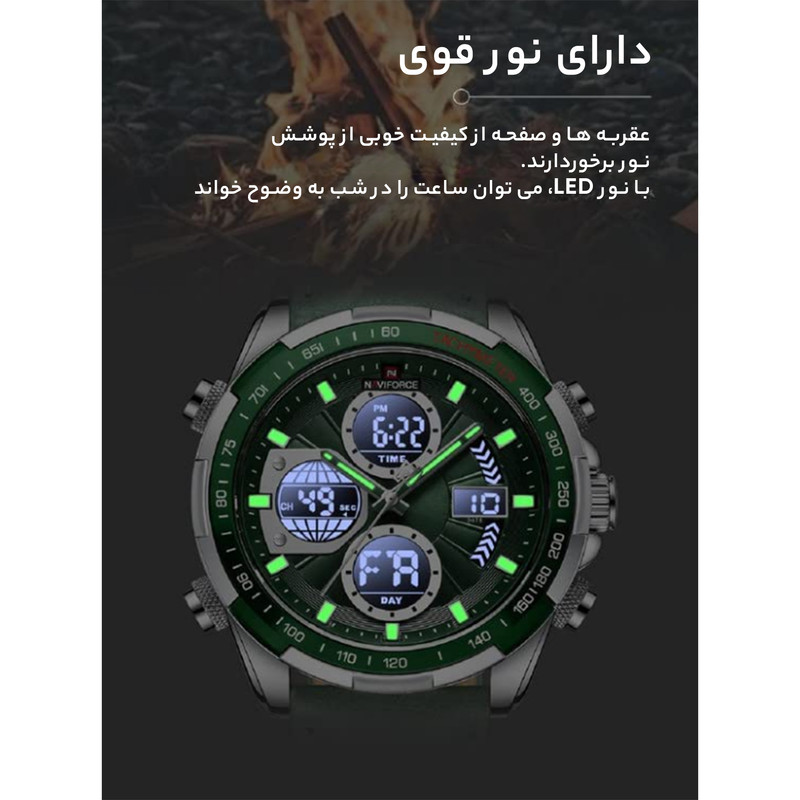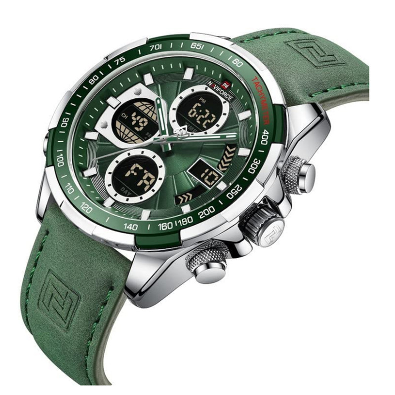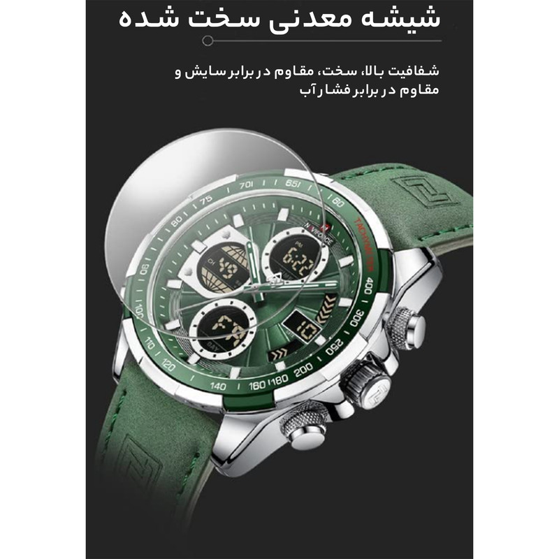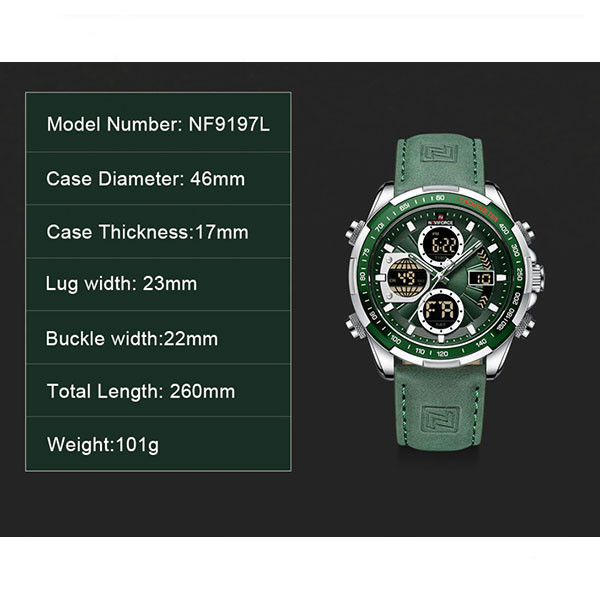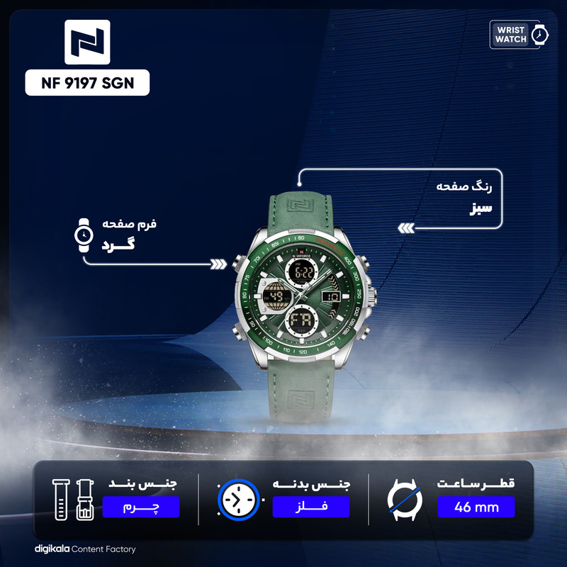ساعت مچی عقربهای مردانه نیوی فورس مدل NF 9197 SGN، یک انتخاب ممتاز برای آقایان است که به دنبال ترکیب زیبایی و عملکرد هستند. این ساعت با طراحی زیبا و استایل کژوال خود، به راحتی میتواند به عنوان یک اکسسوری همیشگی در هر موقعیتی مورد استفاده قرار گیرد. صفحه سبز رنگ این ساعت، جلوهای خاص و جذاب را به آن بخشیده و در کنار فرم گرد صفحه به زیبایی آن افزوده است. جنس شیشه این ساعت از نوع معدنی است که مقاومت بالایی در برابر خراشیدگی و آسیبدیدگی دارد و به استفاده روزمره آن کمک میکند. بدنه نقرهای رنگ این ساعت از فلز باکیفیت ساخته شده است که استحکام و دوام بالایی را ارائه میدهد. بند چرم سبز رنگ نیز نه تنها زیبایی ظاهری ساعت را افزایش میدهد، بلکه راحتی در استفاده را نیز به ارمغان میآورد، به طوری که با قفل سگکی ساده، به راحتی قابل تنظیم و استفاده است. با قطر صفحه 46 میلیمتر، نیوی فورس NF 9197 SGN به وضوح معلمومات زمان را به نمایش میگذارد و آن را به گزینهای عالی برای آقایانی که به جزئیات و کیفیت اهمیت میدهند، تبدیل میکند. بهطور کلی، این ساعت مچی به عنوان یک انتخاب شیک و بادوام برای آقایان، نه تنها نشان از نشاندهنده زمان دارد بلکه به استایل شیک شما نیز بعدی خاص و جذاب میبخشد.