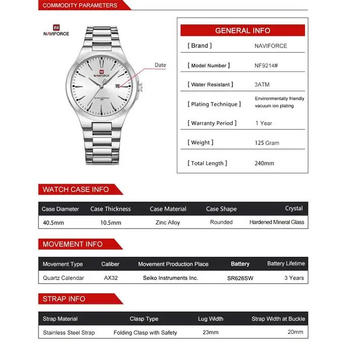| نوع موتور ساعت | کوارتز |