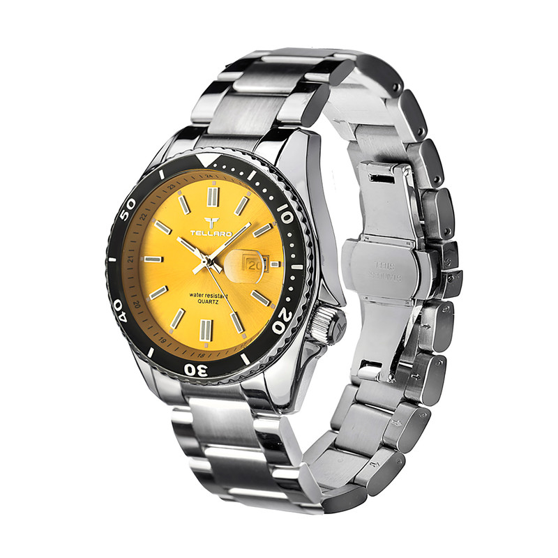 ساعت مردانه tellaro یک اکسسوری بسیار شیک و جذاب کلاسیک مخصوص آقایان شیک پوش می باشد و تنوع بسیار زیادی دارد. برند مشهور tellaro یک شرکت تولید کننده انواع ساعت متعلق به کشور چین می باشد.اما اصالت این برند و طراحی آن متعلق به کشور ایتالیا میباشد تنوع بسیار زیاد و کیفیت مطلوب محصولات به ویژه انواع ساعت مردانه از این برند، سبب محبوبیت آن به ویژه در کشورهای خاورمیانه است. جالب است بدانید،موتور بکارگیری شده در ساعت های مچی برند tellaro ساخت کشور ژاپن می باشد. کشور ژاپن در عرصه تولید انواع ساعت و موتور ساعت در سراسر جهان شهرت زیادی دارد. ترکیب ظاهر کلاسیک با تلفیق تکنولوژی مدرن یکی از اصلی ترین دلایل محبوبیت ساعت مچی های این برند ایتالیایی می باشد. تلارو با ارائه طرح ها و مدل های بسیار متنوع ساعت مچی توانست در کمترین زمان بین آقایان ایرانی محبوبیت زیادی پیدا کند. صفحه نمایش اکثر مدل های ساعت مچی مردانه برند tellaro به شکل دایره می باشد. نوع کارکرد این ساعت ها از طرح کلاسیک الهام گرفته شده و به شکل عقربه ای یا به اصطلاح آنالوگ می باشد. جنس بدنه ساعت های مچی این برند اکثراً از فلز است و خاصیت ضد زنگ دارد. بند این ساعت ها از جنس استیل ضد زنگ یا چرم مصنوعی درجه یک و شیشه آن هاردلکس می باشد که ظاهری بسیار جذاب و شیک دارد که بسیار مقاوم هستند. نمایش تاریخ، کرونوگراف، سرعت سنج از جمله امکانات این ساعت ها هستند. قفل بند آن ها نیز تاشو با محافظ است. رنگ پس زمینه صفحه نمایش این ساعت های مچی نیز دارای طرح ها و زیبا و متنوع است و رنگ هایی مانند سفید، طلایی و نقره ای دارد. نوع بند و نوع قفل یکی از مهمترین ویژگی هایی است که هنگام خرید ساعت مچی باید به آن توجه داشته باشید. ساعت های دارای بند فلزی به صورت قفل مخفی فشاری و ساعت های بند چرمی به صورت بندینکی بسته می شوند. هنگام خرید ساعت به سایز مچ و رنگ پوست توجه داشته باشید و نوع بند و رنگ ساعت را بر این اساس انتخاب نمایید.