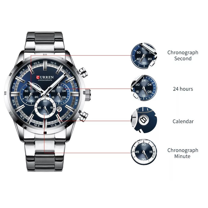 | قابلیتهای تخصصی ساعت | نمایش 24 ساعته، تاریخشمار، عقربههای شبتاب، کرنوگراف |