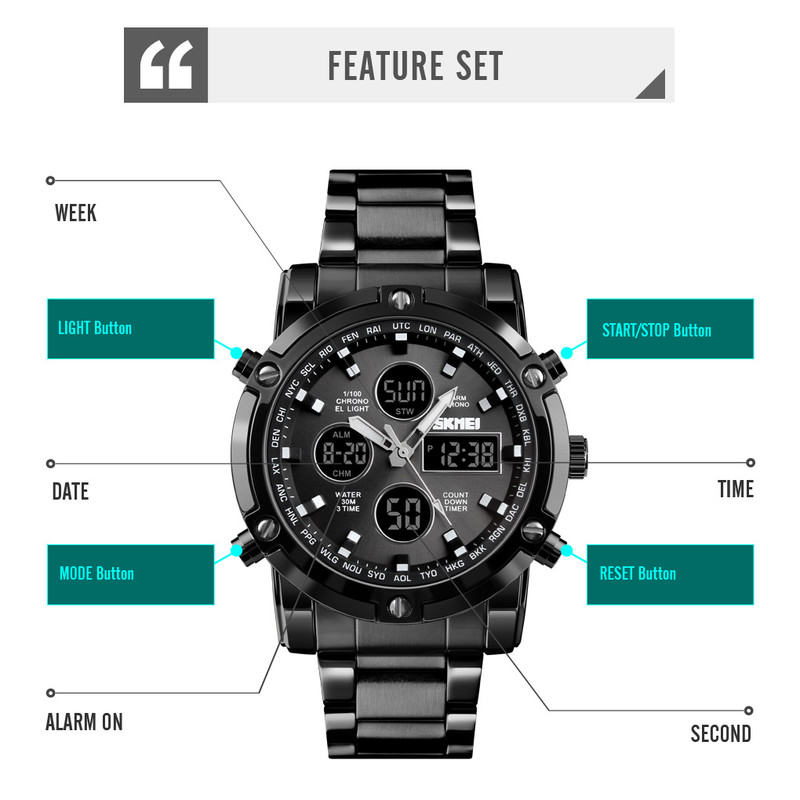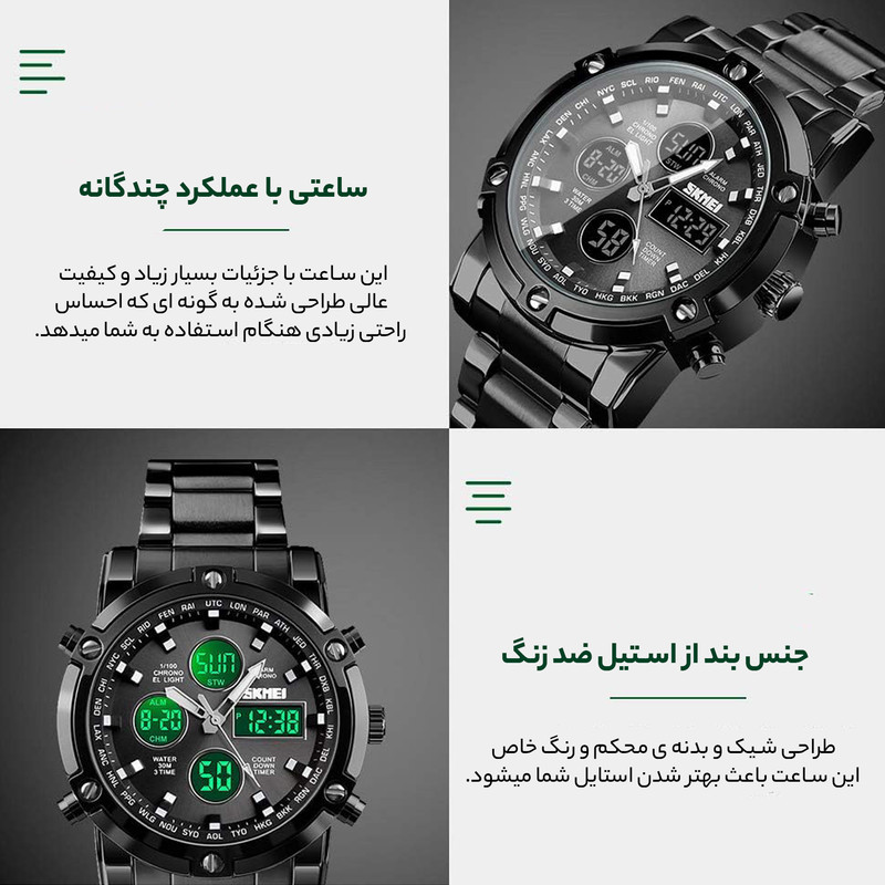 ساعت مچی عقربهای مردانه اسکمی مدل 1389M، انتخابی ایدهآل برای آقایانی است که به دنبال ترکیب شیک و کارآمدی در ساعت مچی خود هستند. با صفحهای مشکی و فرم گرد، این ساعت به راحتی با هر استایل و مناسبتهایی چون مجالس رسمی و ملاقاتهای کاری هماهنگ میشود. بدنه فلزی مشکی و بند استیل با عرض 22 میلیمتر، مقاومت و زیبایی را در کنار هم به ارمغان میآورد. قطر 48 میلیمتر این ساعت، بر روی مچ دست جلوهای برجسته دارد. شیشه معدنی آن نه تنها از زیبایی صفحه محافظت میکند بلکه مقاومت بالایی در برابر خط و خش نیز دارد. موتور کوارتز این ساعت دقت و اطمینان بالایی در زمانسنجی به شما میدهد. طراحی کلیپسی با محافظ برای بند، ایمنی و راحتی در استفاده را تضمین میکند. علاوه بر این، قابلیت نمایش 24 ساعته این مدل، امکان استفاده از آن را در شرایط گوناگون، از جمله سفر و فعالیتهای روزمره، آسانتر میسازد. به طور کلی، ساعت اسکمی مدل 1389M نه تنها ابزاری کاربردی برای زمانسنجی است، بلکه به عنوان یک اکسسوری لوکس، به استایل شما جلوهای خاص میبخشد. با این ساعت، هر بار که به مچ دست خود نگاهی بیندازید، احساس اعتماد به نفس و شیک بودن خواهید کرد.