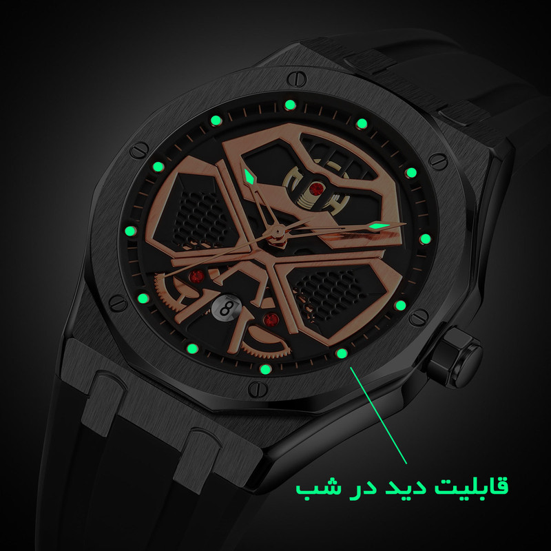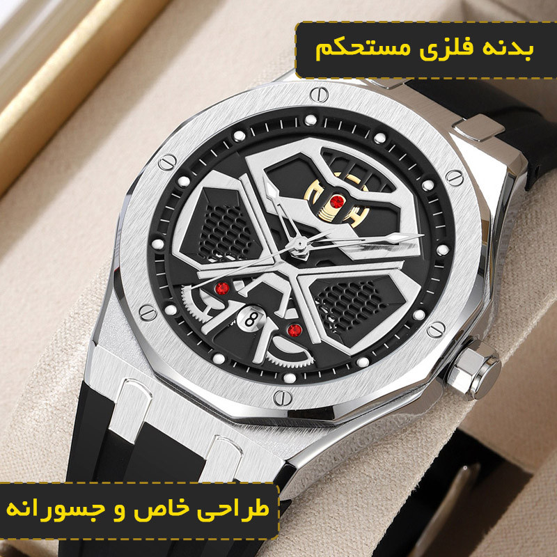 ساعت مچی مردانه SKMEI مدل ۹۳۶۲، یک اکسسوری جسورانه و مدرن برای کسانی است که به دنبال ساعتی با ظاهری متفاوت هستند. این ساعت با طراحی صفحه‌نمایش اسکلتون که قسمت‌های داخلی موتور را به نمایش می‌گذارد، جلوه‌ای فنی و جذاب به استایل شما می‌بخشد. از ویژگی‌های برجسته آن می‌توان به بدنه فلزی از جنس آلیاژ روی اشاره کرد که علاوه بر استحکام، ظاهری مدرن و صنعتی به ساعت می‌دهد. بند سیلیکون (silica gel) آن بسیار سبک و منعطف است و استفاده طولانی‌مدت از آن را راحت می‌کند. این ساعت با موتور کوارتز کار می‌کند که دقت بالایی در نمایش زمان دارد و با وجود وزن ۷۸.۶ گرم، روی مچ دست شما سنگینی نمی‌کند. همچنین، شیشه آن از جنس کریستال مقاوم در برابر خط و خش است و با مقاومت در برابر آب تا عمق ۳۰ متر، می‌توانید با خیال راحت از آن در فعالیت‌های روزمره مانند شستن دست‌ها یا زیر باران استفاده کنید.
