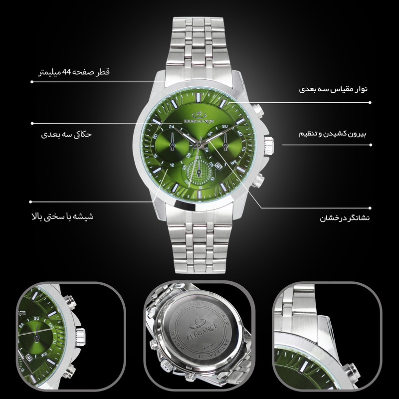 این ساعت جزء ساعت های کلاسیک و آنالوگ محسوب می شود و مناسب برای آقایان خوشتیپ می باشد. ساعت مچی الگانس باتری بسیار قوی دارد و دارای بند استیل می باشد. بند استیل، اغلب محبوب ترین انتخاب برای آقایان است.