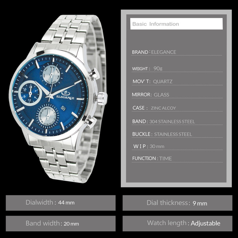 این ساعت جزء ساعت های کلاسیک و آنالوگ محسوب می شود و مناسب برای آقایان خوشتیپ می باشد. ساعت مچی الگانس باتری بسیار قوی دارد و دارای بند استیل می باشد. بند استیل، اغلب محبوب ترین انتخاب برای آقایان است.