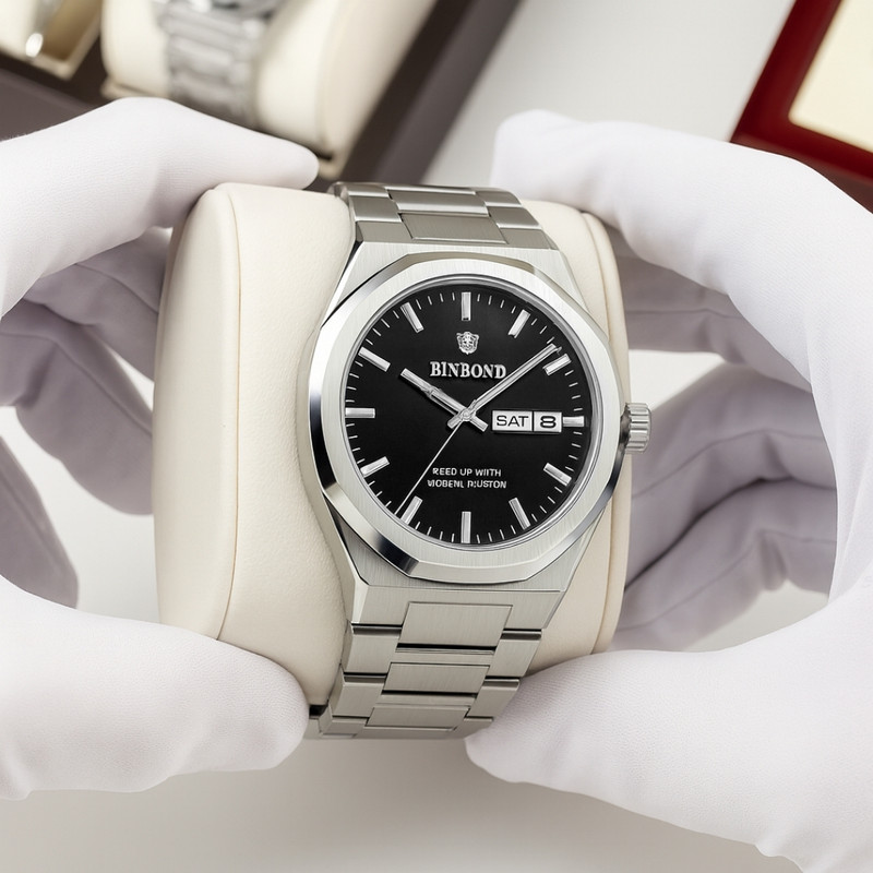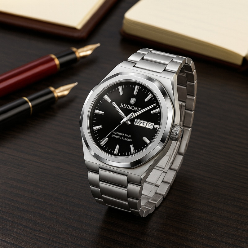 ساعت مچی عقربهای کوارتز مردانه بین باند مدل کلاسیک لوکس اسپرت دی دیت بند استیل قفل مخفی کد J.A2