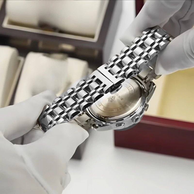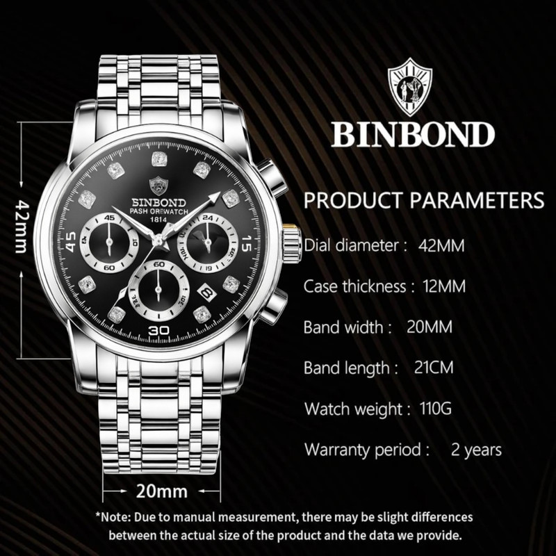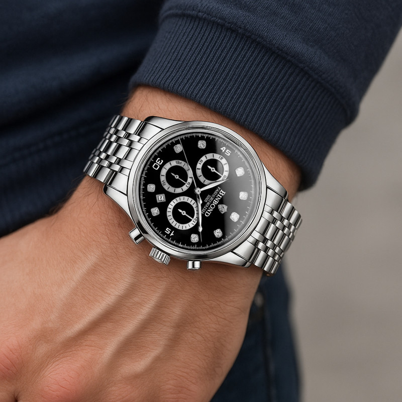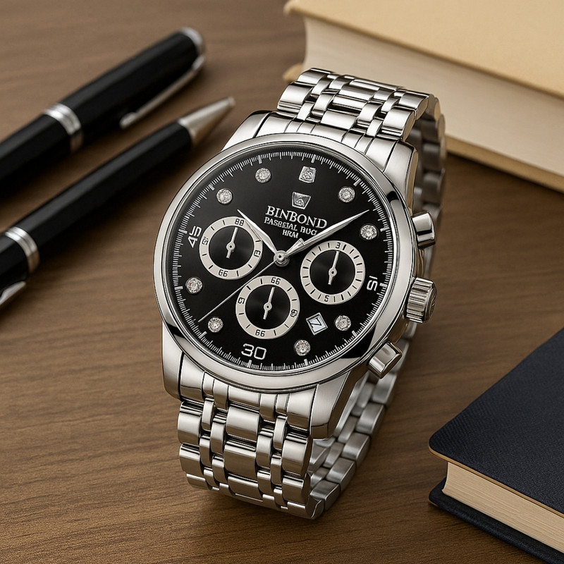 ساعت مچی عقربهای کوارتز مردانه بین باند مدل اسپرت سه موتور فعال کرنوگراف بند استیل قفل مخفی کد B7
